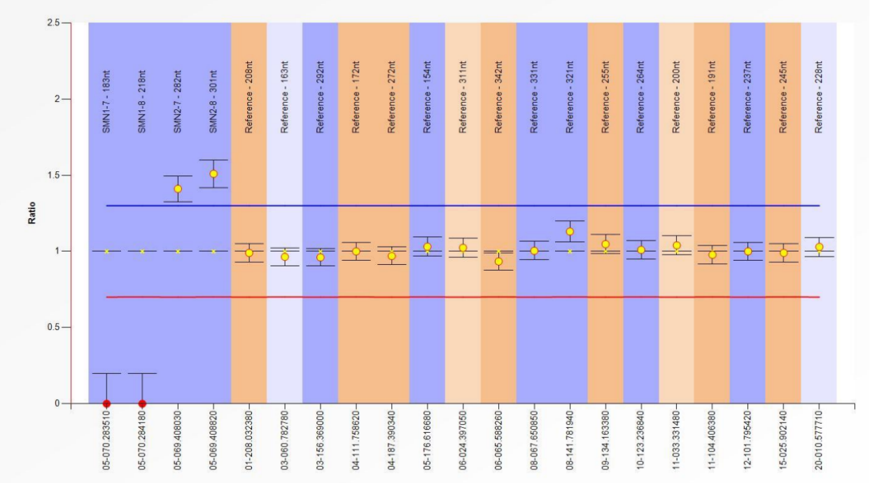 Description | Spinal muscular atrophy (SMA) is an autosomal recessive neuromuscular disease characterized by progressive muscle weakness and atrophy caused by the degeneration of motor neurons in the anterior horn of the spinal cord. The disease is the number one fatal genetic disease in infancy, and it is estimated that there is one case in every 10,000 live births; the carrier rate of the general population is about 1/50, and the carrier rate of the domestic population is about 1/42. |