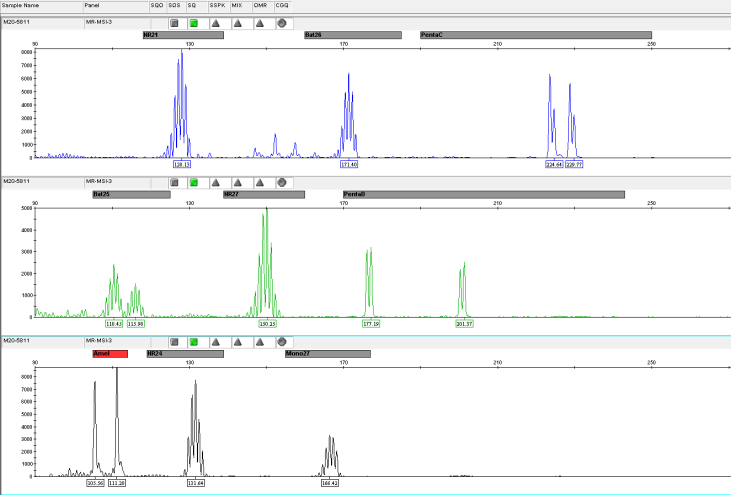 微衛(wèi)星是人類(lèi)基因組的一段串聯(lián)重復(fù)序列,一般在1~6bp之間,又被稱(chēng)作短串連重復(fù)(Short Tandem Repeats,STRs)或簡(jiǎn)單重復(fù)序列(Simple Sequence Repeat,SSRs)。 微衛(wèi)星不穩(wěn)定(Microsatellite Instability,MSI)指的是微衛(wèi)星重復(fù)次數(shù)減少或者增加,微衛(wèi)星不穩(wěn)定的內(nèi)在機(jī)制是錯(cuò)配修復(fù)(MMR)系統(tǒng)失調(diào),從而限制了糾正微衛(wèi)星自發(fā)的長(zhǎng)度改變的體細(xì)胞突變的能力,體細(xì)胞突變積累,最終形成MSI。