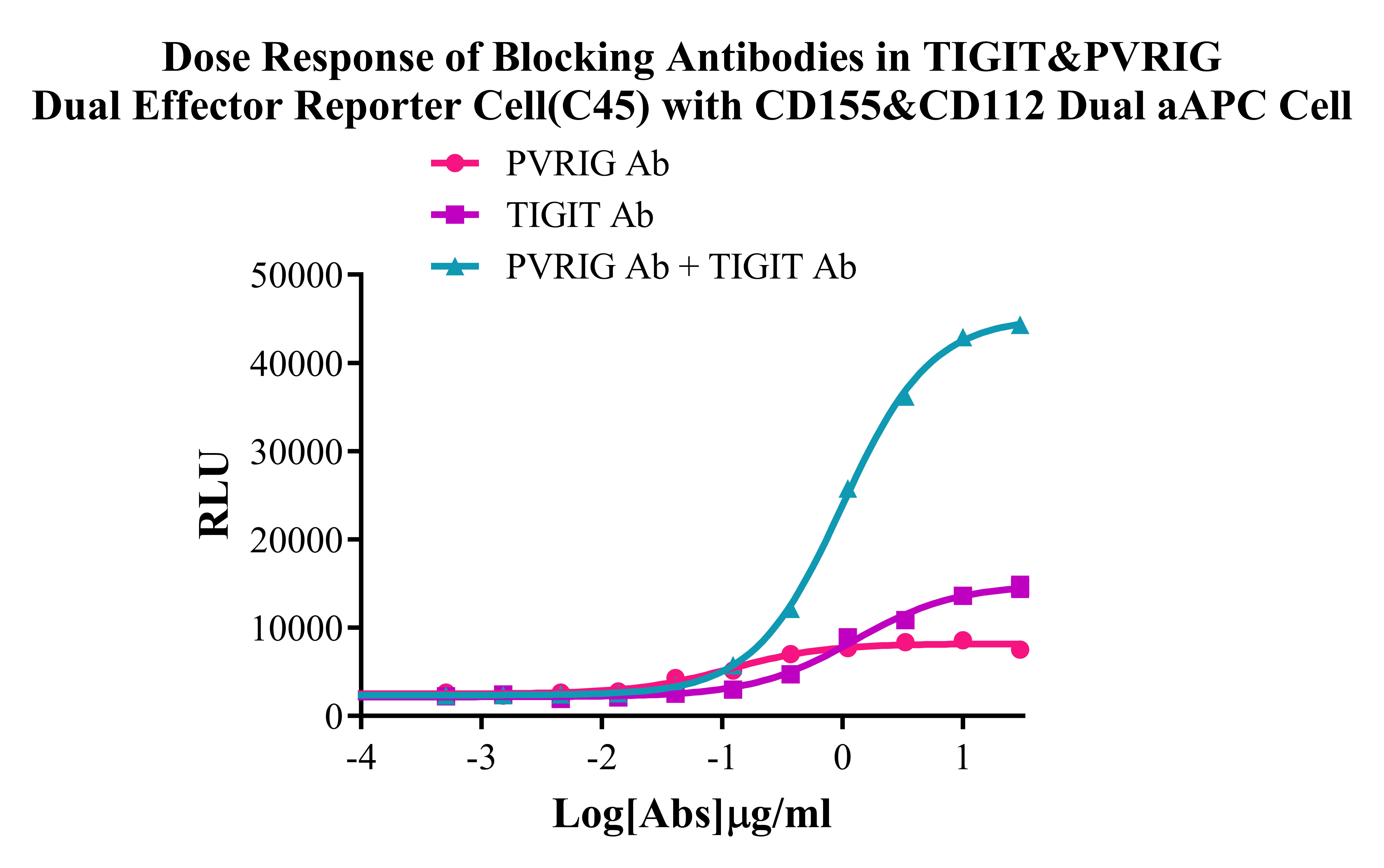 Figure 2. Dose Response of Blocking Antibodies in TIGIT/PVRIG Dual Effector Reporter Cell(C45) With CD112/CD155 Dual aAPC Cell.