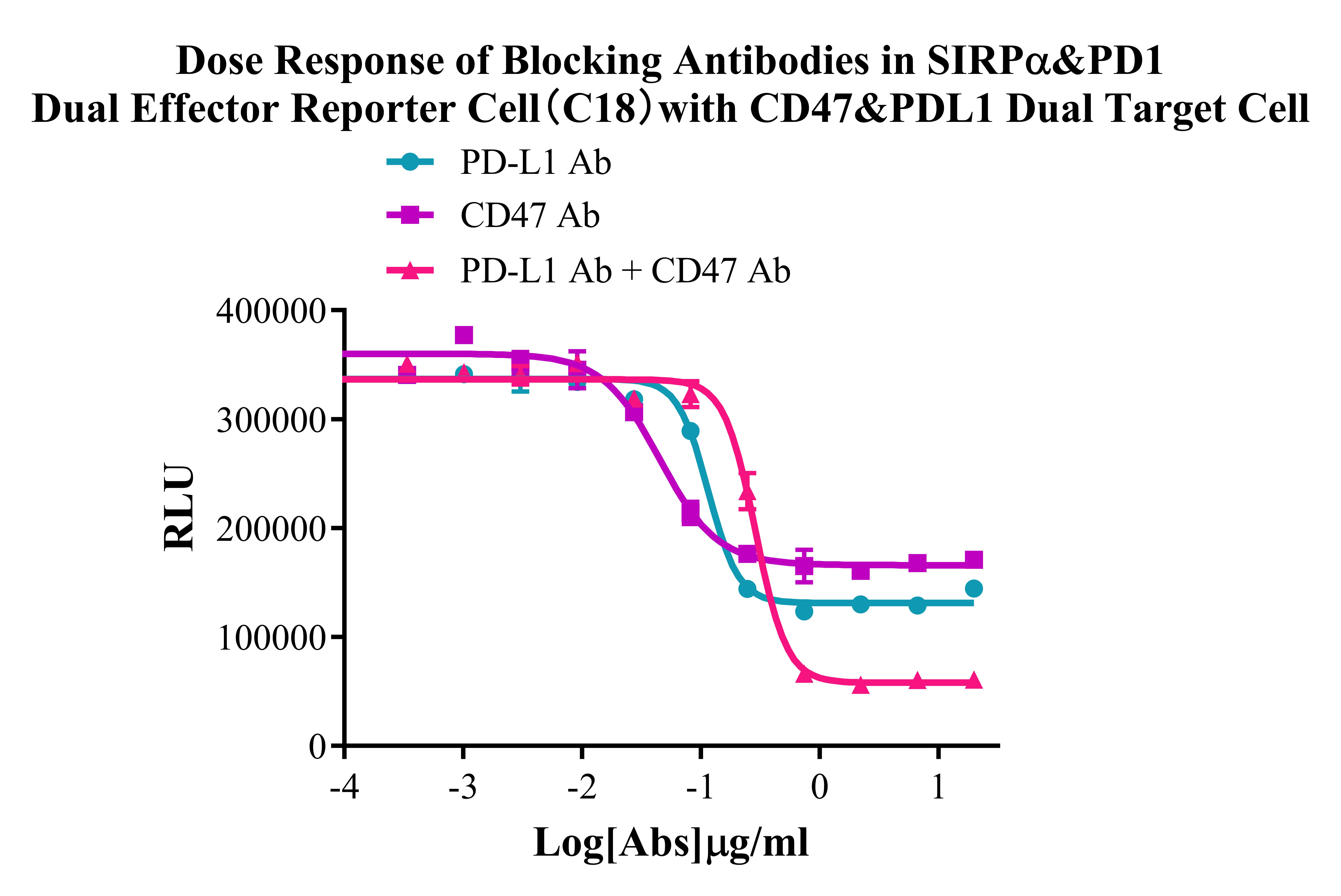 Figure 1. Dose Response of Blocking Antibodies in SIRPα/PD-1 Dual Effector Reporter Cell(C18) with CD47/PD-L1 Dual Target Cell.
