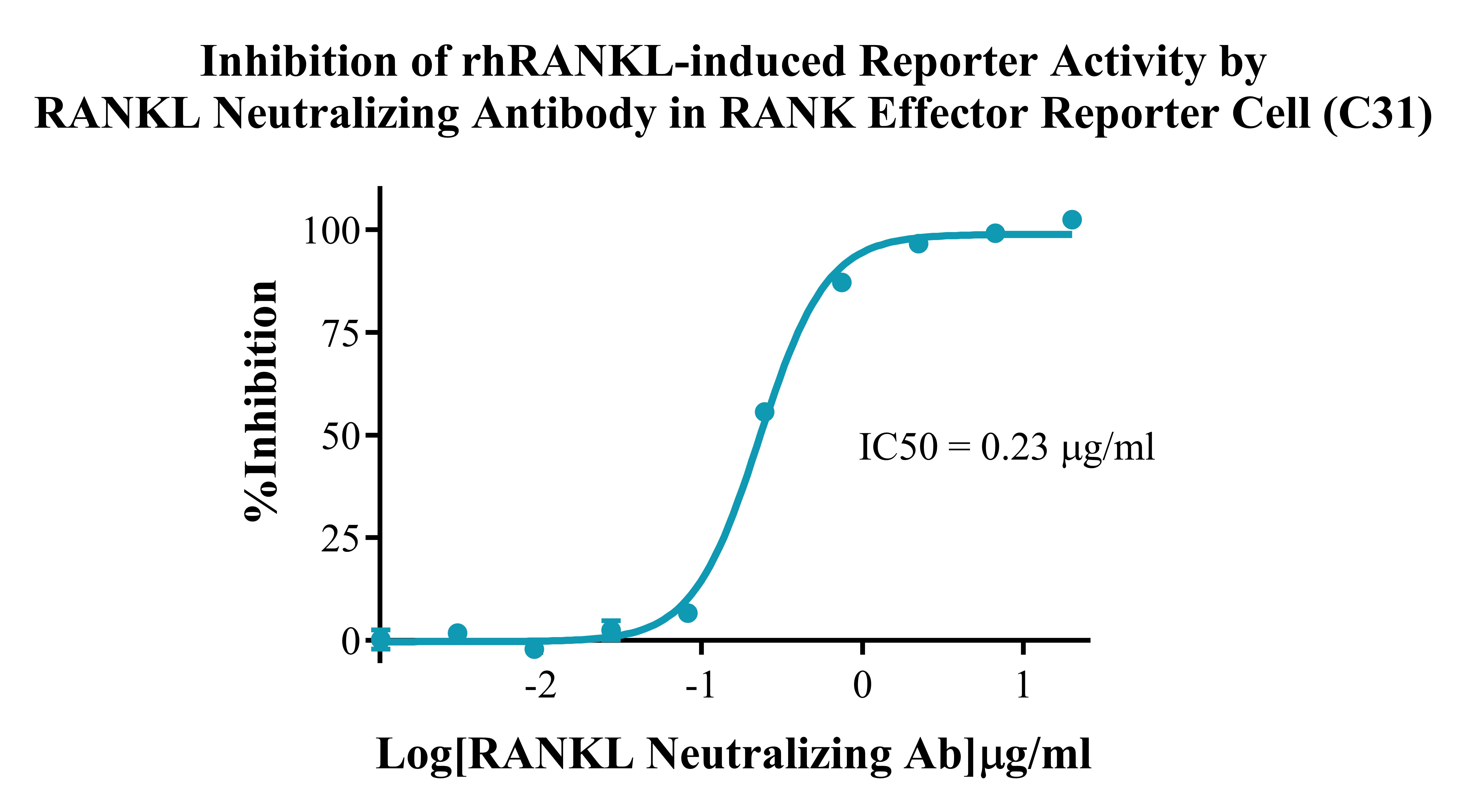 Figure 3. lnhibition of rhRANKL-induced Reporter Activity by RANKL Neutralizing Antibody in RANK Effector Reporter Cell(C31). |