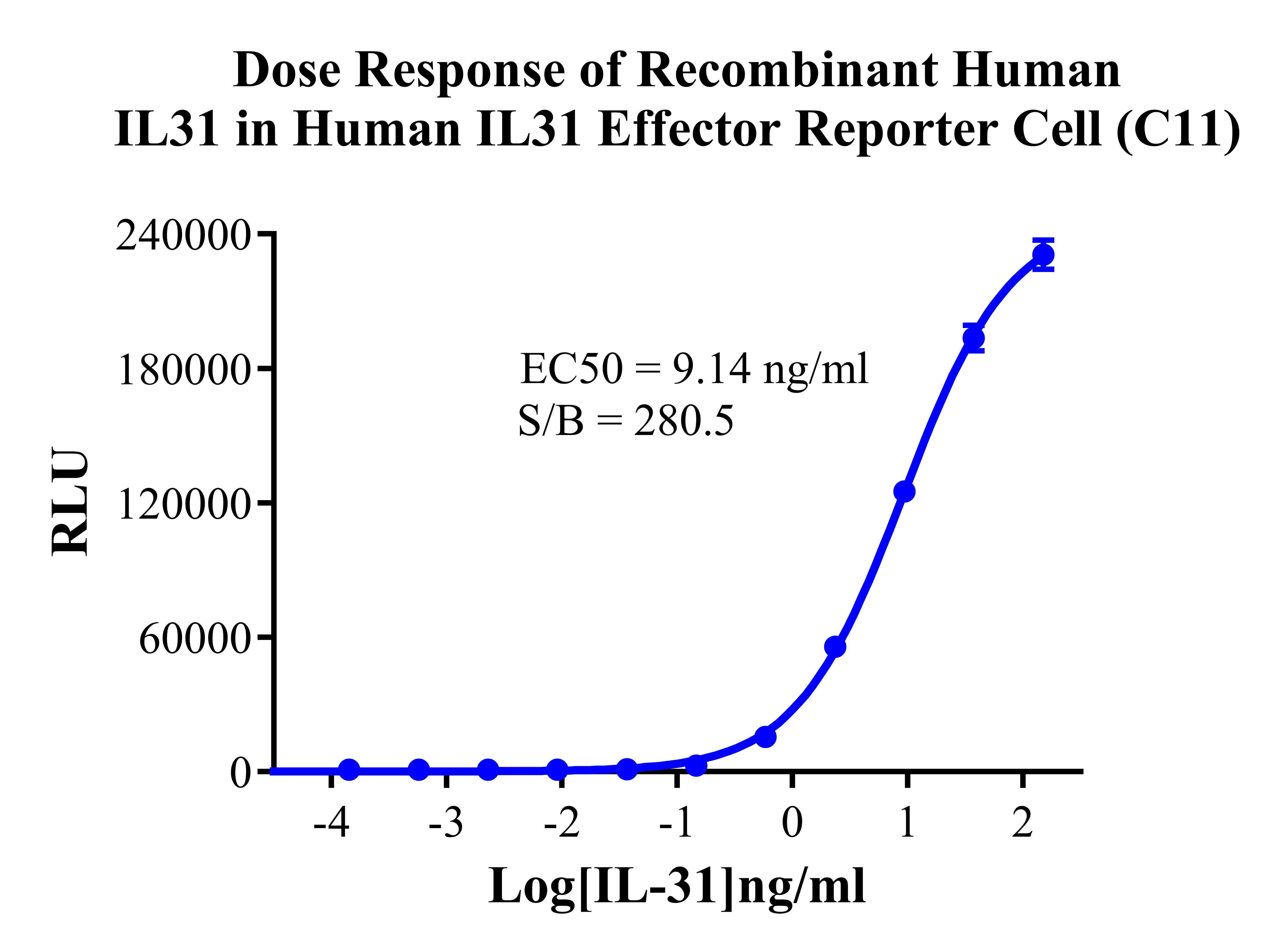 Figure 3. Dose Response of Recombinant Human IL31 in Human IL31 Effector Reporter Cells(C11).