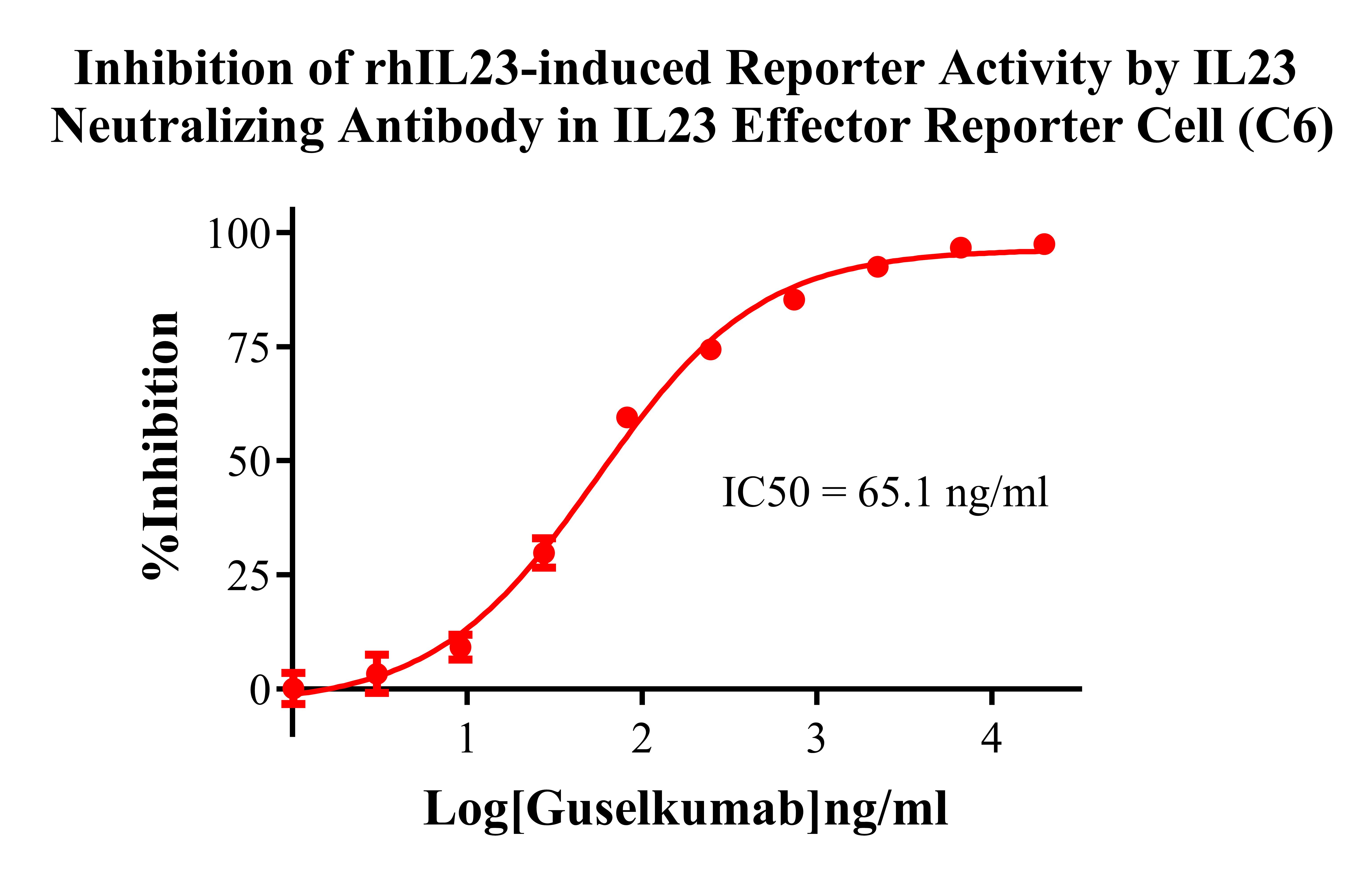 Figure 4.Inhibition of rhlL23-induced Reporter Activity by IL23 Neutralizing Antibody in IL23 Effector Reporter Cells (C6). |