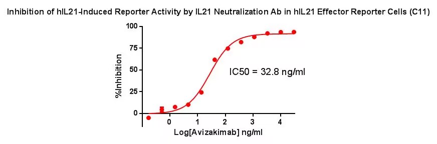 Figure 3.Inhibition of hIlL21-Induced Reporter Activity by lL21 Neutralization Ab in hlL21 Effector Reporter Cells (C11). |