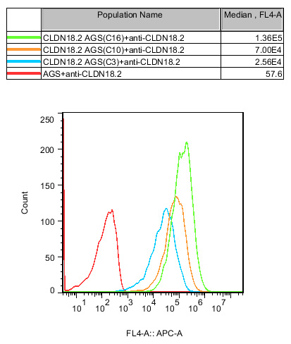 Claudin18是位于細胞膜表面緊密連接的主要成分,它在維持細胞極性和屏障功能以及促進耐酸能力方面起著重要作用。CLDN18的第一個外顯子可以選擇性剪接,形成兩個具有高度同源氨基酸序列的不同剪接突變體(CLDN18.1和CLDN18.2)??缒さ鞍證LDN18由兩個細胞外環(huán)、四個跨膜結(jié)構(gòu)域和一個細胞質(zhì)結(jié)構(gòu)域組成。 |