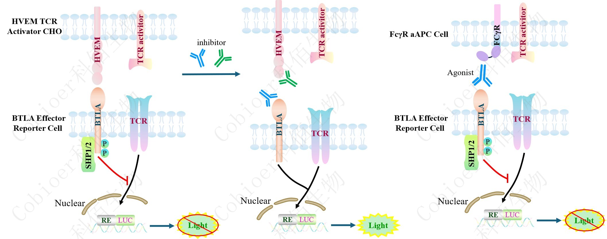 BTLA Effector Reporter Cell 報(bào)告基因藥靶模型很好的模擬了體內(nèi) BTLA 的信號轉(zhuǎn)導(dǎo)過 程,原理見下圖所示。![]() Figure 1. BTLA Effector Reporter Cell 模型原理圖 |