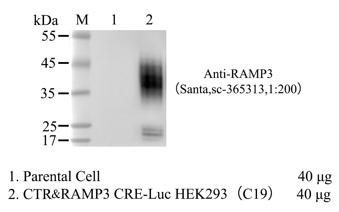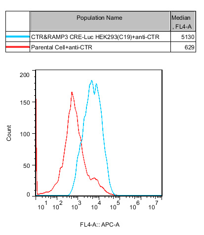 CTR&CTR&RAMP3 CRE-Luc HEK293 報告基因藥靶模型很好的模擬了體內(nèi) CTR 的信號轉(zhuǎn)導(dǎo) 過程,原理見下圖所示。![]() Figure 1. CTR&RAMP3 CRE-Luc HEK293 細(xì)胞模型原理圖 |