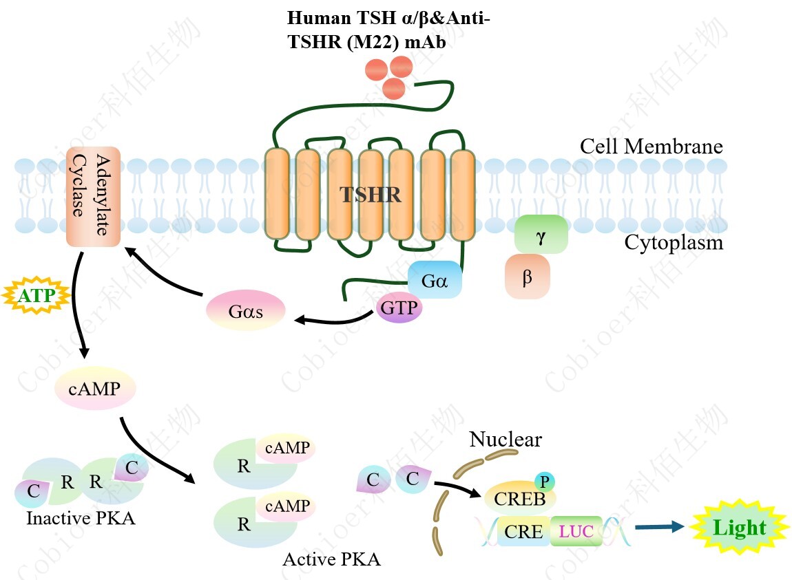 ![]() Figure 1. TSHR CRE-Luc HEK293細(xì)胞模型原理圖
