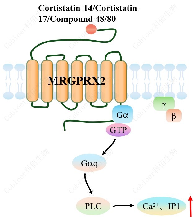MRGPRX2 Gα15 HEK293 細胞藥靶模型很好的模擬了體內(nèi) MRGPRX2&Gα15 的信號轉 導過程,原理見圖所示。