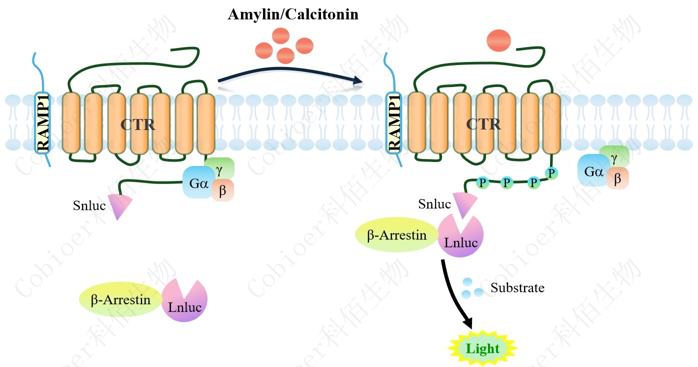 ![]() Figure 1. CTR&RAMP1 β-Arrestin CHO 細胞模型原理圖