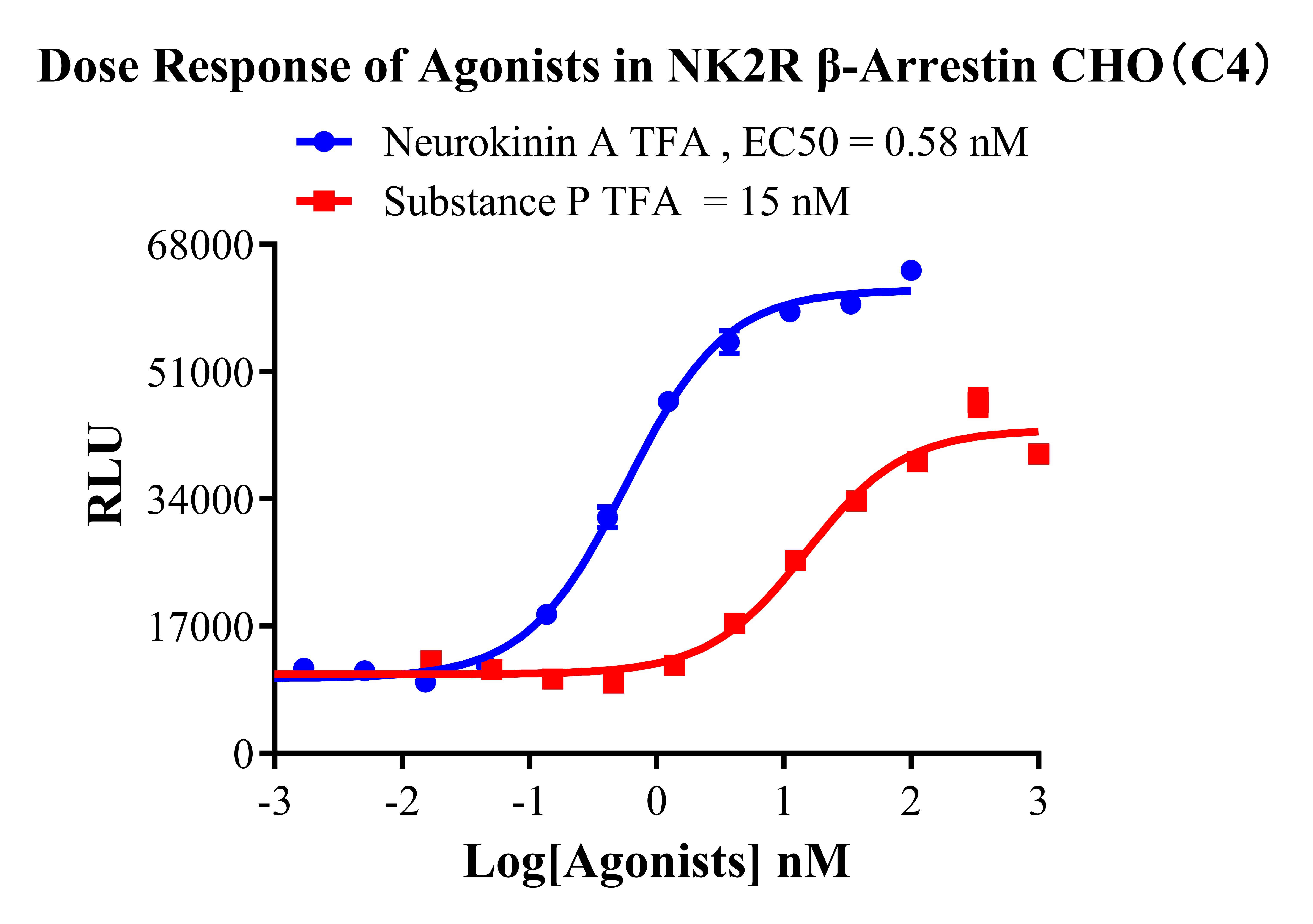 速激肽(Tachykinins )是分布在哺乳動(dòng)物中樞和周圍神經(jīng)系統(tǒng)中的一類神經(jīng)肽。速激 肽物質(zhì) P(SP)、神經(jīng)激肽 A(NKA)和神經(jīng)激肽 B(NKB)共享一個(gè)保守的 C 端基序, 對(duì)速激肽受體(NK1R、NK2R 和 NK3R)的激活至關(guān)重要。NKA 優(yōu)先激活與 Gα偶聯(lián)的 NK2R,而 SP 和 NKB 分別優(yōu)先結(jié)合 NK1R 和 NK3R。三種速激肽都能夠在所有速激肽受 體類型中表現(xiàn)為完全激動(dòng)劑。 NK2R 是一種 GPCR,普遍存在于中樞和周圍神經(jīng)系統(tǒng),然而,有研究發(fā)現(xiàn),NK2R 與 血紅蛋白 A1c(HbA1c)水平顯著相關(guān)。HbA1c 是評(píng)估長期血糖控制的重要指標(biāo),表明 NK2R 可能在糖代謝調(diào)控中發(fā)揮關(guān)鍵作用。 |
