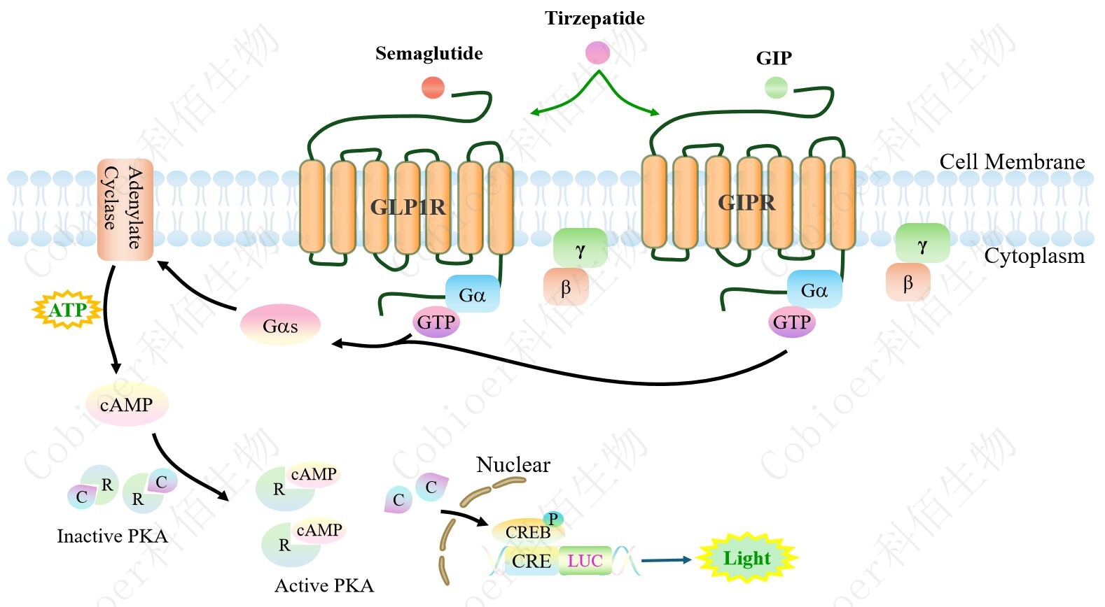 Figure 1. GLP1R&GIPR Dual Reporter Cell 細(xì)胞模型原理圖