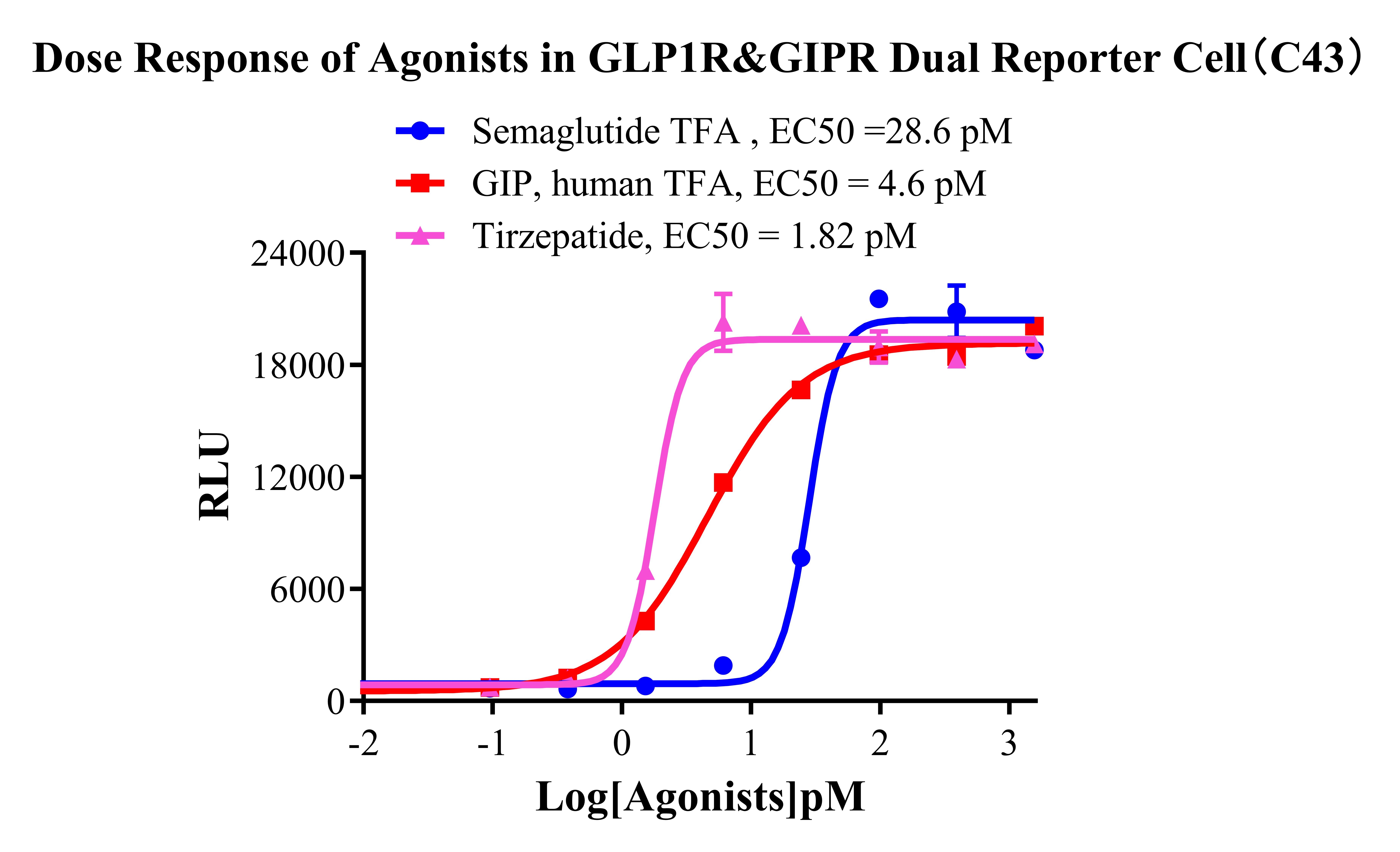 Figure 3. Dose  response of Agonists in GLP1R&GIPR Dual Reporter Cell(C43).