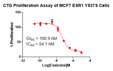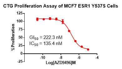 Figure 2. Anti-proliferation assay of AZD9496 on MCF7 ESR1 Y537S. Figure 3. Anti-proliferation assay of Faslodex on MCF7 ESR1 Y537S. |