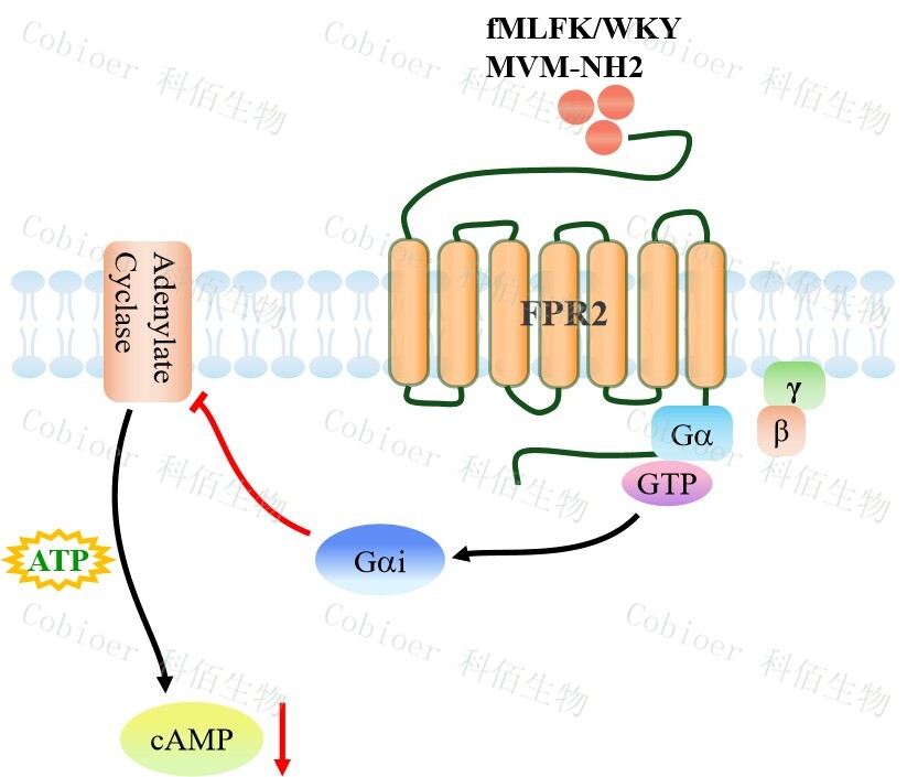 甲酰肽受體(FPR)屬于 G 蛋白偶聯(lián)受體(GPCR)家族,是趨化受體和模式識(shí)別受 體(PRR),可識(shí)別細(xì)菌和線粒體衍生的甲?;?。FPRs 家族包括三個(gè)成員(FPR1、 FPR2 和 FPR3),它們?cè)诙喾N組織和細(xì)胞類型中廣泛表達(dá),調(diào)節(jié)多種生物功能,如血管生 成、細(xì)胞增殖和防止細(xì)胞死亡。 FPR 在吞噬細(xì)胞中轉(zhuǎn)導(dǎo)趨化信號(hào),這些吞噬細(xì)胞與組織損傷相關(guān)的趨化分子模式發(fā)生 反應(yīng),這些分子模式介導(dǎo)細(xì)胞粘附、定向遷移、脫顆粒和超氧化物產(chǎn)生,從而通過細(xì)胞內(nèi) 鈣動(dòng)員和 MAPK、ERK、PI3K、Akt 和 p38/MAPK 信號(hào)轉(zhuǎn)導(dǎo)來調(diào)節(jié)宿主防御和炎癥反應(yīng)途 徑。 | |