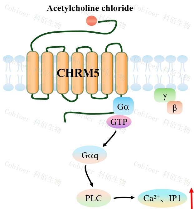 CHRM5(Cholinergic Receptor Muscarinic 5)是毒蕈堿型乙酰膽堿受體(mAChRs)家 族成員之一,屬于 GPCR,主要分布于中樞神經(jīng)系統(tǒng)(如中腦多巴胺能神經(jīng)元、紋狀體) 及外周組織(如胰島β細(xì)胞),通過(guò)調(diào)控乙酰膽堿(ACh)信號(hào)影響?yīng)勝p通路、代謝穩(wěn)態(tài)及 藥物成癮行為。ACh 結(jié)合 CHRM5 后激活 Gq/11 蛋白,激活 PLCβ通路,水解 PIP2 生成 IP 3 和 DAG,驅(qū)動(dòng)鈣離子釋放及 PKC 活化;也通過(guò)β-arrestin 通路調(diào)控 ERK 磷酸化,影響基 因表達(dá)與細(xì)胞增殖。 | |