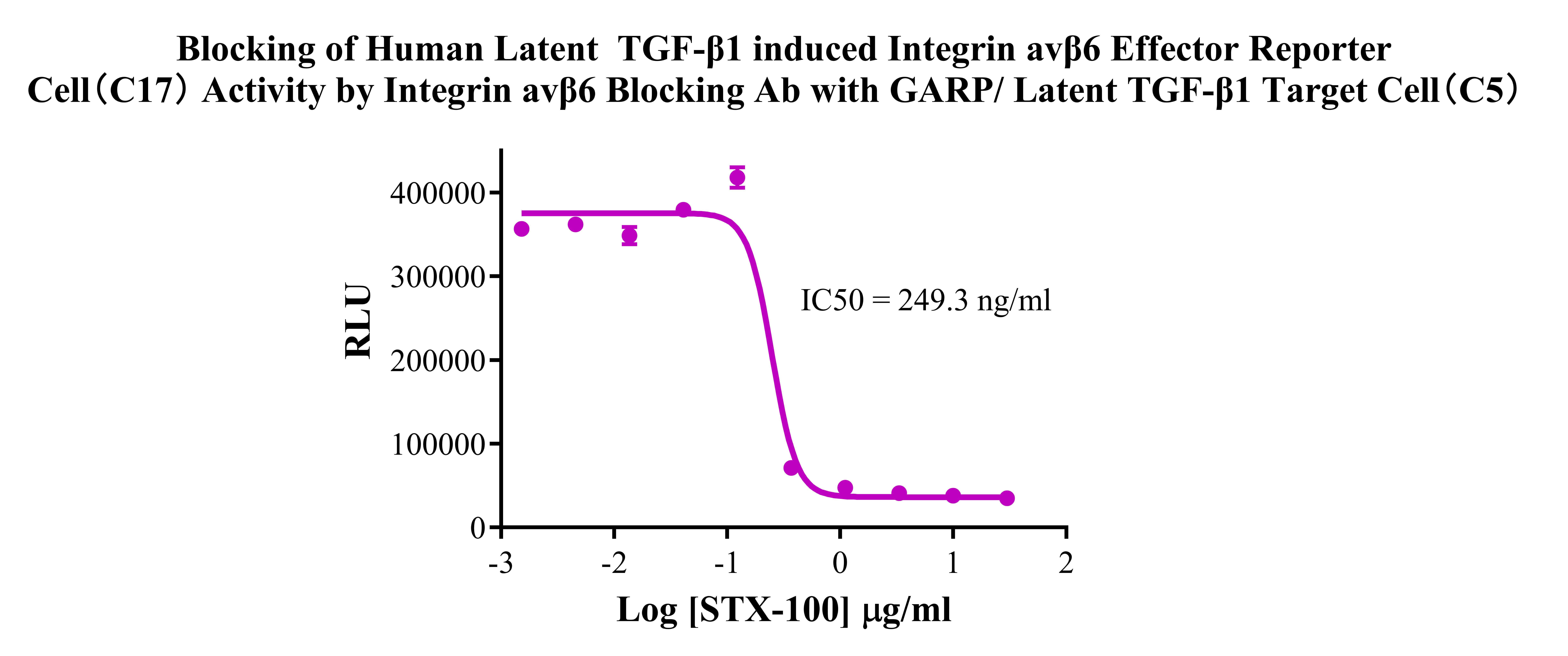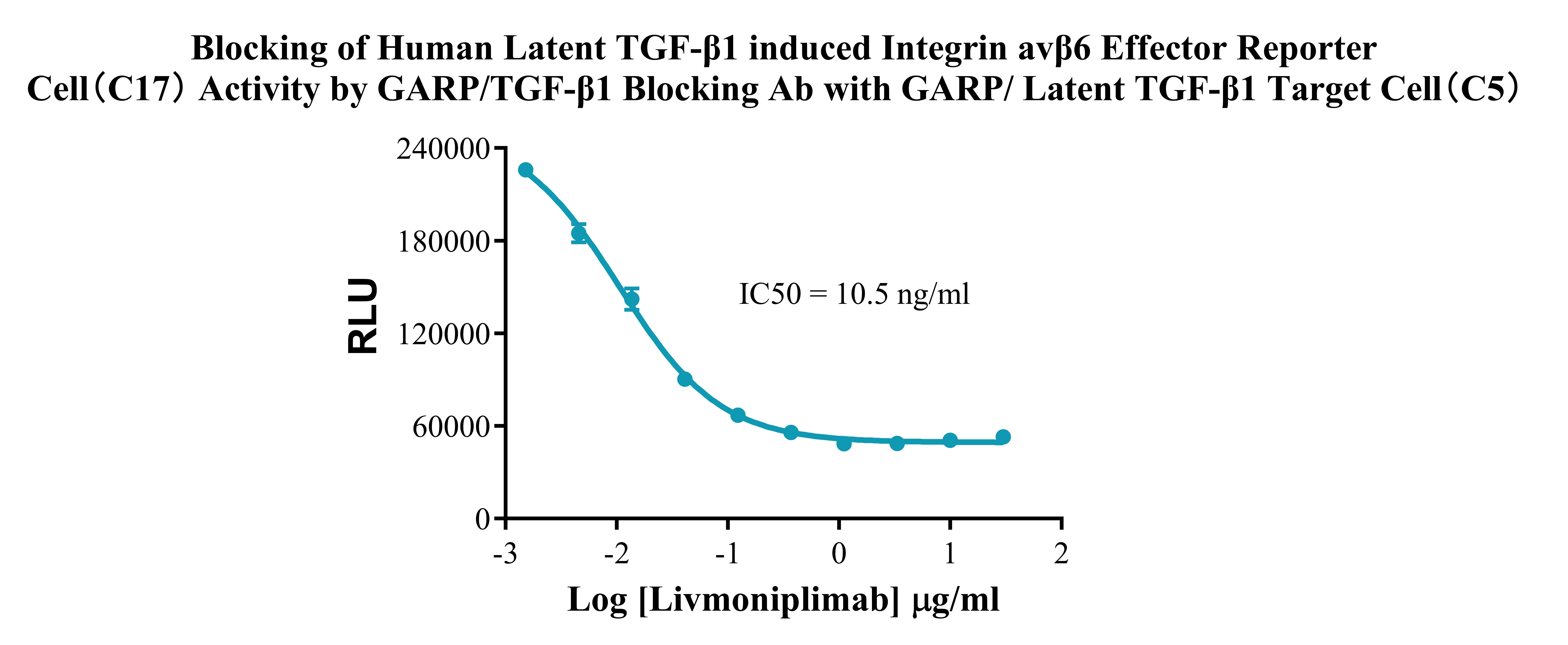 Figure 6.Blocking of Human Latent TGF-β1 induced Integrin avβ6 Effector Reporter Cell(C17) Activity by GARP/TGF-β1 Blocking Ab with GARP/Latent TGF-β1 Target Cell(C5).