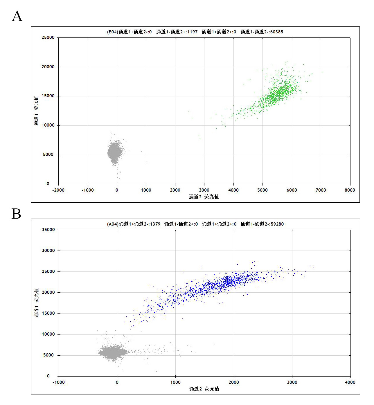 ![]() Figure 2. Sanger of ESR1[D538G](Homozygous,AF%:100) Isogenic MCF7. ![]() Figure 3. A: MCF7 Parental Cell;B:ESR1[D538G](Homozygous,AF%:100)Isogenic MCF7 通道 2 藍(lán)色微滴代表 ESR1[D538G]突變陽性,通道 2 綠色微滴代表該位點為陰性野生型 ![]() Figure 4. CTG Proliferation Assays of ESR1 [D538G](Homozygous,AF%:100) Isogenie MCF7. |