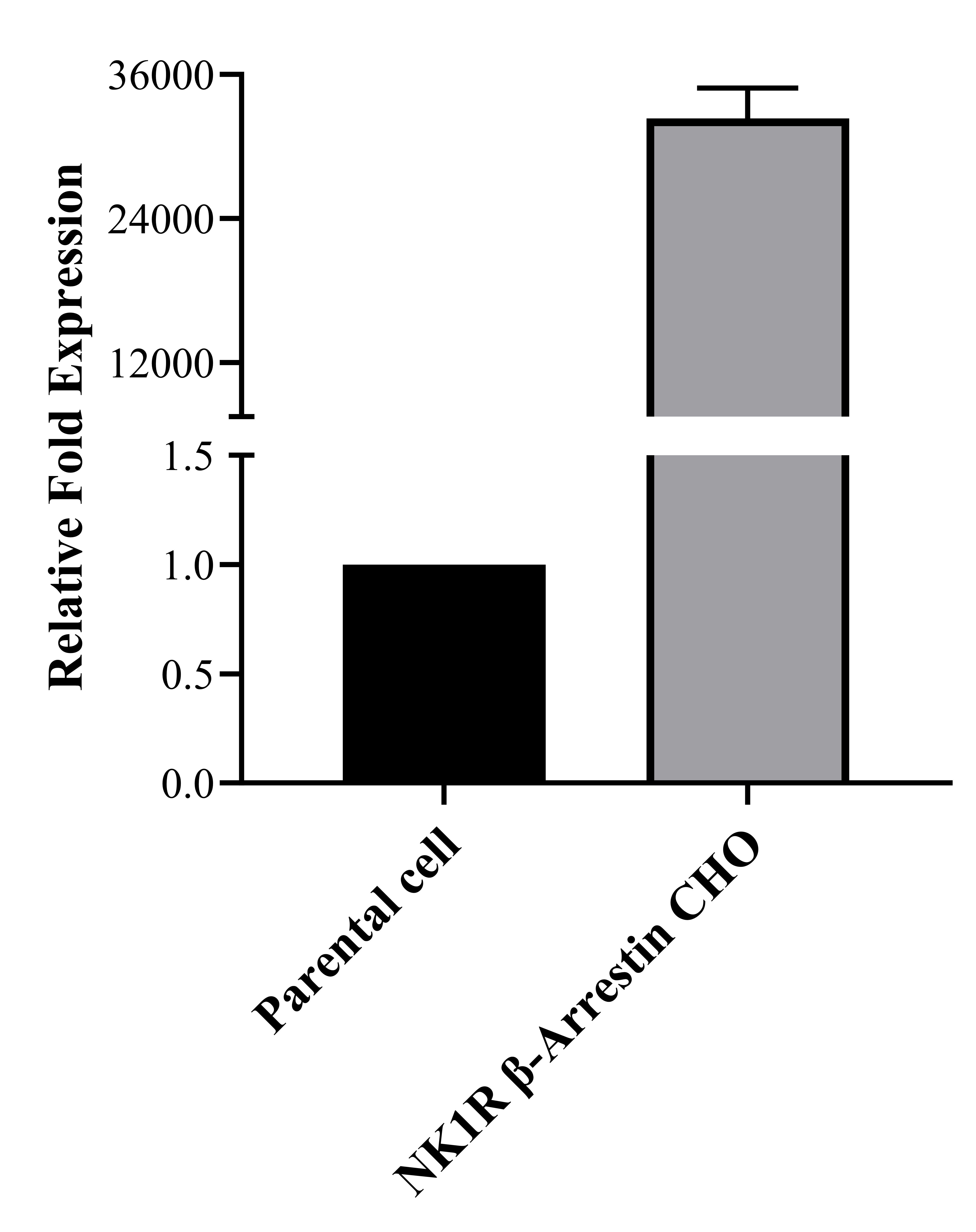 NK1R β-Arrestin CHO 報告基因藥靶模型很好的模擬了體內(nèi) NK1R/β-Arrestin 的信號轉(zhuǎn) 導過程,原理見下圖所示。當缺乏配體刺激時,β-Arrestin 不與 NK1R 結(jié)合,融合β-Arrestin的熒光素酶處于失活構(gòu)象,當 NK1R 遭遇配體刺激時,融合熒光素酶報告基因的β-Arrestin 被招募,使熒光素酶報告基因處于激活狀態(tài),加入其底物后發(fā)光信號增強。![]() Figure 1. NK1R β-Arrestin CHO 細胞模型原理圖 |