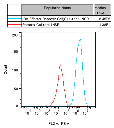 IRA Effector Reporter Cell 報告基因藥靶模型很好的模擬了體內(nèi) Insulin 的信號轉(zhuǎn)導過程, 原理見下圖所示。![]() Figure 1. IRA Effector Reporter Cell 細胞模型原理圖 |