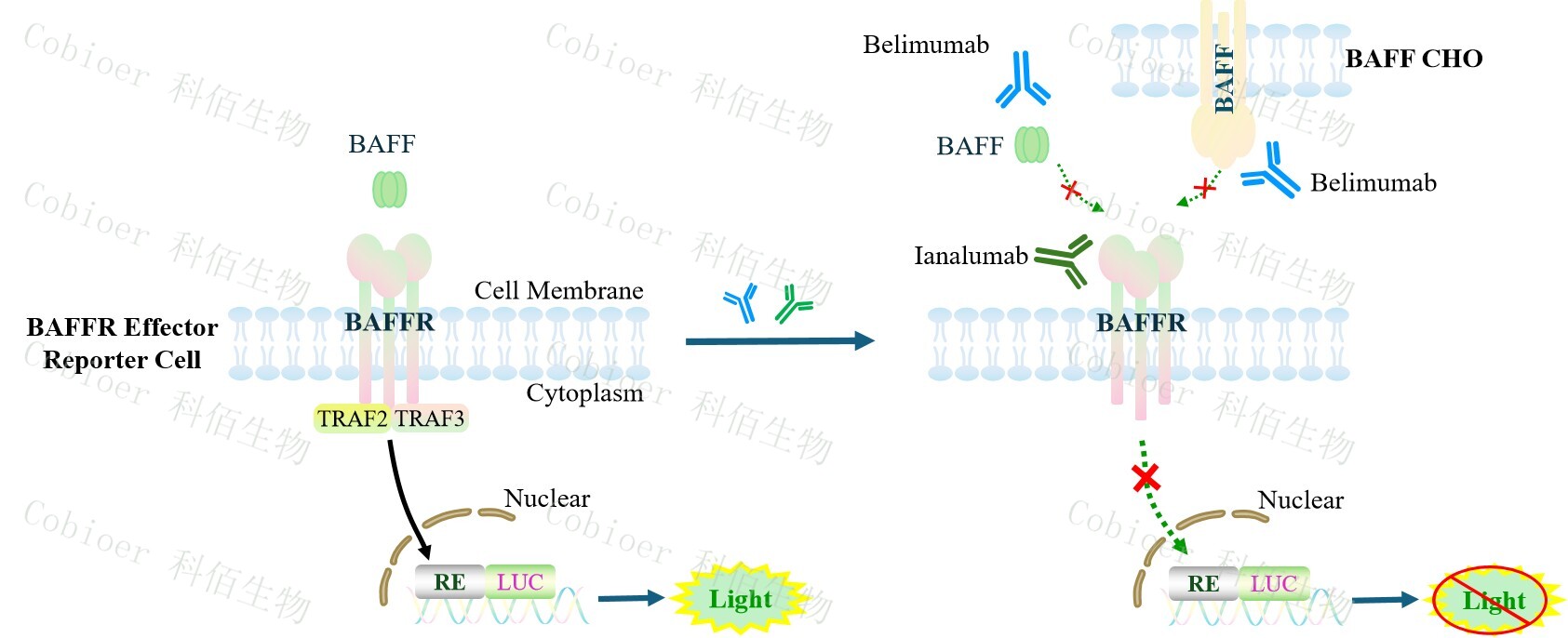 BAFFR Effector Reporter Cell 細胞模型原理圖