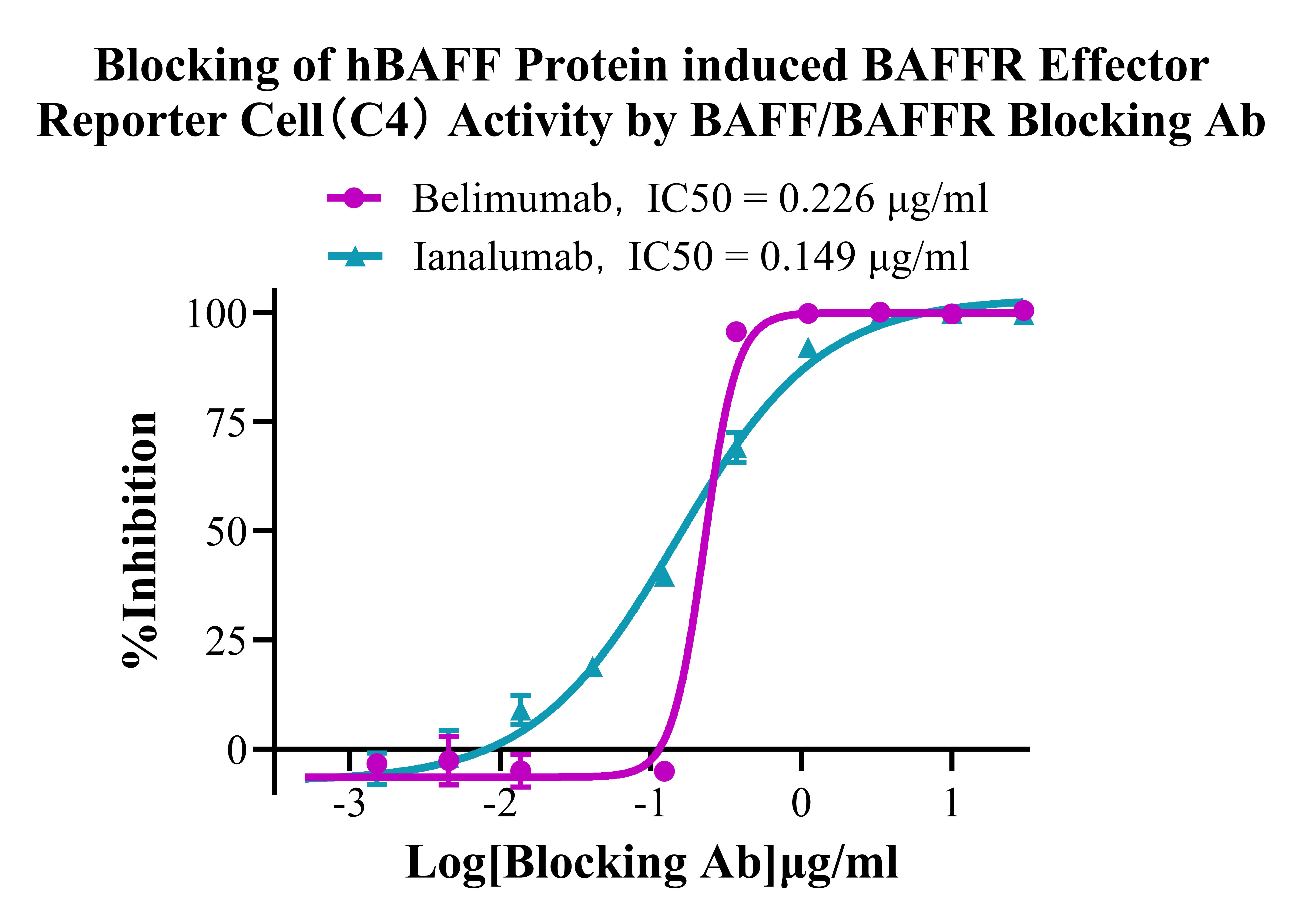 Blocking of BAFF induced BAFFR Effector Reporter Cell(C4) Activity by BAFFBlocking Ab with BAFF CHO.
