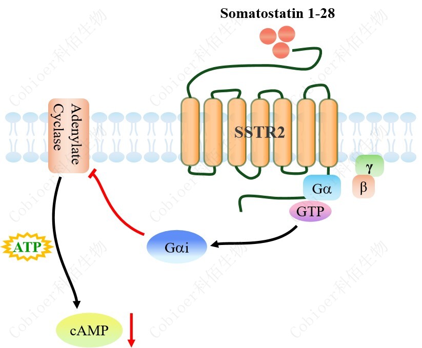 生長(zhǎng)抑素受體(Somatostatin receptor,SSTRs)是 GPCR 超家族中的 class A 家族的成 員,共有 5 種亞型,分別為 SSTR1-SSTR5,其中 SSTR2 是唯一一種有 SSTR2a 和 SSTR2b 這 2 種異構(gòu)體的 SSTR 亞型受體蛋白。SSTR2 廣泛分布于正常組織中,如腦下垂體、胰島、 腎上腺、胸腺、胃腸道以及免疫系統(tǒng)等,在不同受體的組織,表達(dá)譜各不相同。 |