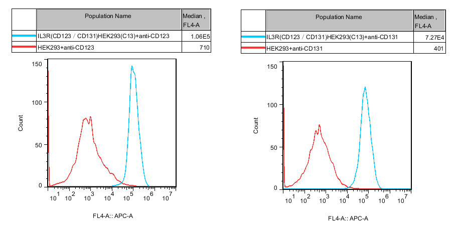 IL3R(CD123/CD131) HEK293 細胞,在 HEK293 細胞的基礎(chǔ)上,穩(wěn)定表 達人 IL3R(CD123/CD131)。 |