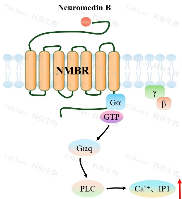 神經(jīng)介素 B 受體(NMBR)是一種廣泛分布于中樞神經(jīng)系統(tǒng)(如調(diào)控焦慮與攝食的下 丘腦、杏仁核)、外周組織(如肺、胃腸平滑?。┘岸喾N腫瘤(包括小細胞肺癌、膠質(zhì)瘤) 中的 G 蛋白偶聯(lián)受體(GPCR),其特異性結(jié)合配體神經(jīng)介素 B(NMB)或蛙皮素后,主 要激活 Gαq/11-PLCβ 信號級聯(lián),觸發(fā) IP3 介導(dǎo)的 Ga 2+釋放與 DAG-PKC 驅(qū)動的 ERK 磷酸化, 進而調(diào)控細胞增殖、炎癥因子釋放(如 TNF-α/IL-6)及平滑肌收縮;該受體在生理層面參 與攝食抑制(下丘腦 POMC 神經(jīng)元激活)與痛覺調(diào)節(jié)(增強阿片鎮(zhèn)痛),但病理狀態(tài)下通 過促進腫瘤增殖(如肺癌自分泌環(huán)激活 PI3K/AKT)、血管新生(膠質(zhì)瘤 VEGF 分泌)和 免疫微環(huán)境重塑(募集腫瘤相關(guān)巨噬細胞)驅(qū)動疾病進展,同時介導(dǎo)哮喘的氣道高反應(yīng)性 與腸易激綜合征的胃腸動力紊亂,當前其治療價值聚焦于拮抗劑用于抗腫瘤、抗炎(緩解 支氣管痙攣)及激動劑治療中樞代謝性疾?。ㄈ绶逝郑_發(fā)兼具組織選擇性(外周拮 抗/中樞激動)與穩(wěn)定性的藥物仍是核心挑戰(zhàn)。 | |