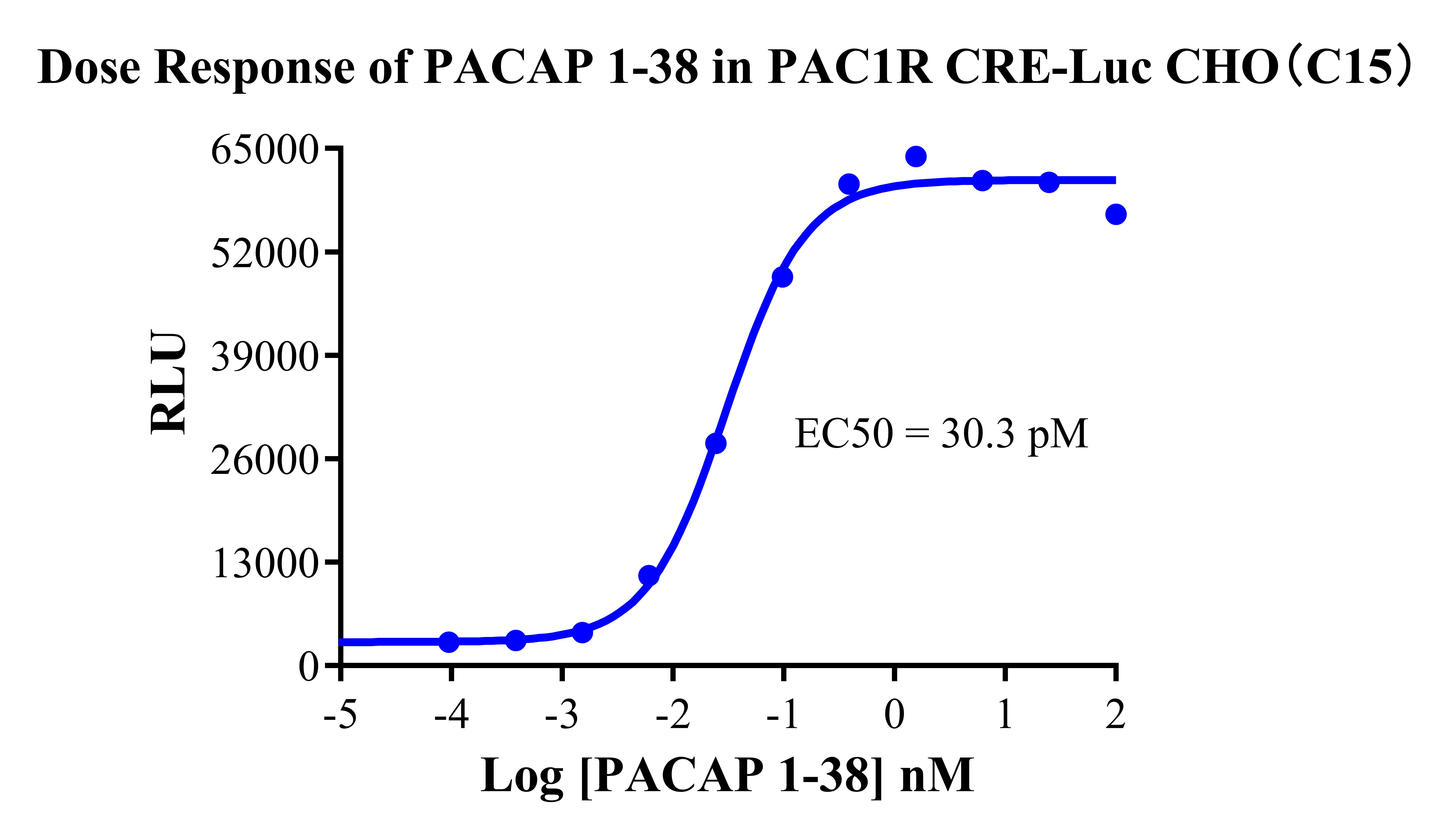 V. Representative Data![]() Figure 1. Recombinant PAC1R CRE-Luc CHO stably expressing PAC1R. ![]() Figure 2. Dose Response of PACAP 1-38 in PAC1R CRE-Luc CHO(C15). ![]() Figure 3. Inhibition of PACAP 1-38 induced Reporter Activity by PACAP38 Neutralization Ab in PAC1R CRE-Luc CHO(C15). |