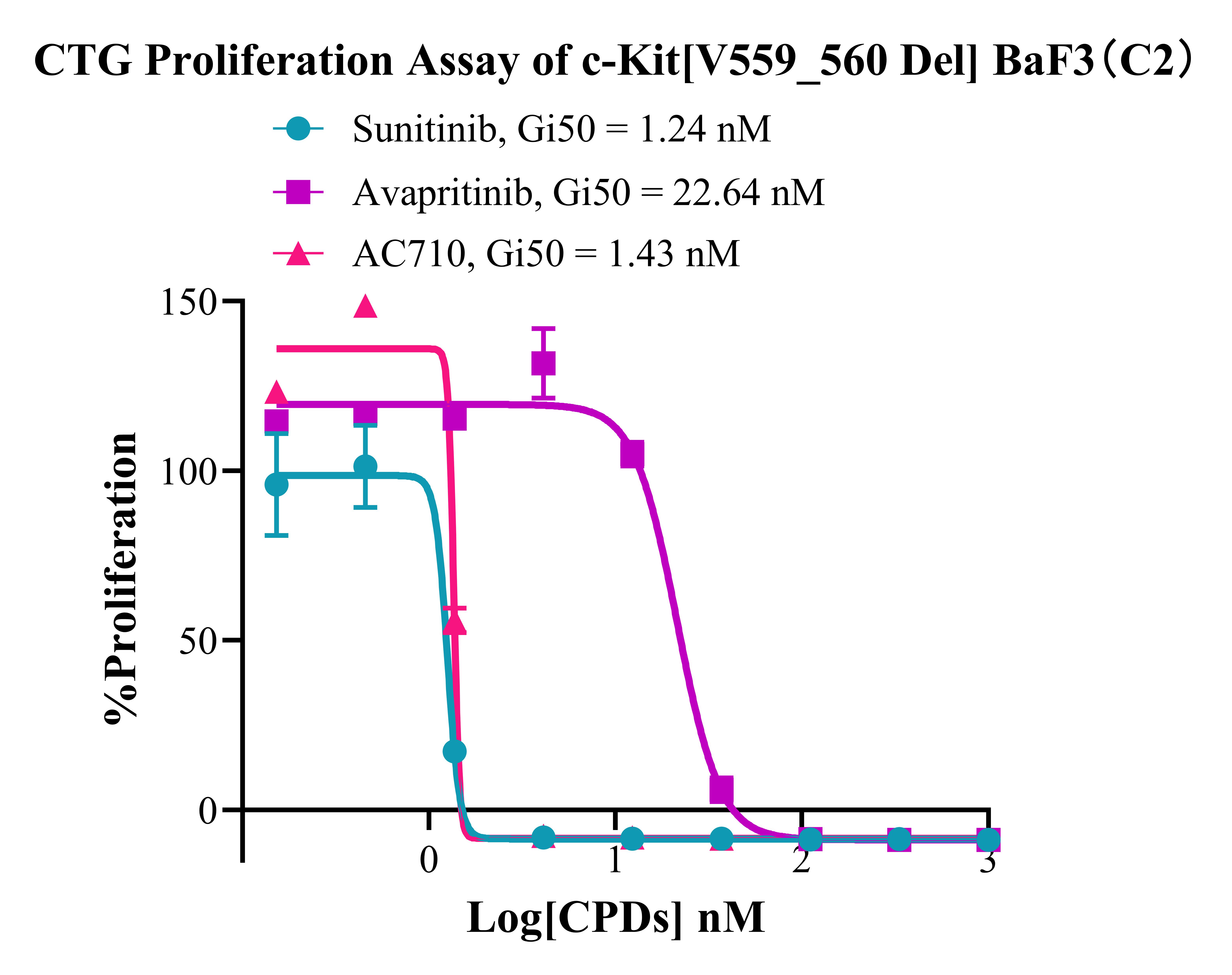 Figure 3. CTG Proliferation Assay of c-Kit [V559_560 Del] BaF3(C2).