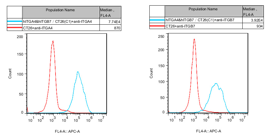 Figure 1. Recombinant hITGA4&hITGB7/CT26 stably expressing  hITGA4&hITGB7.