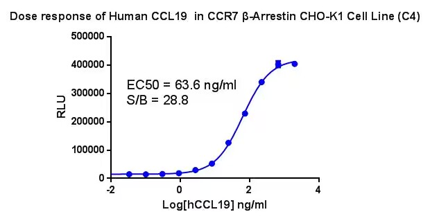 Figure 1. Dose response of Human CCL19 in CCR7 β-Arrestin CHO-K1 Cell Line (C4). |