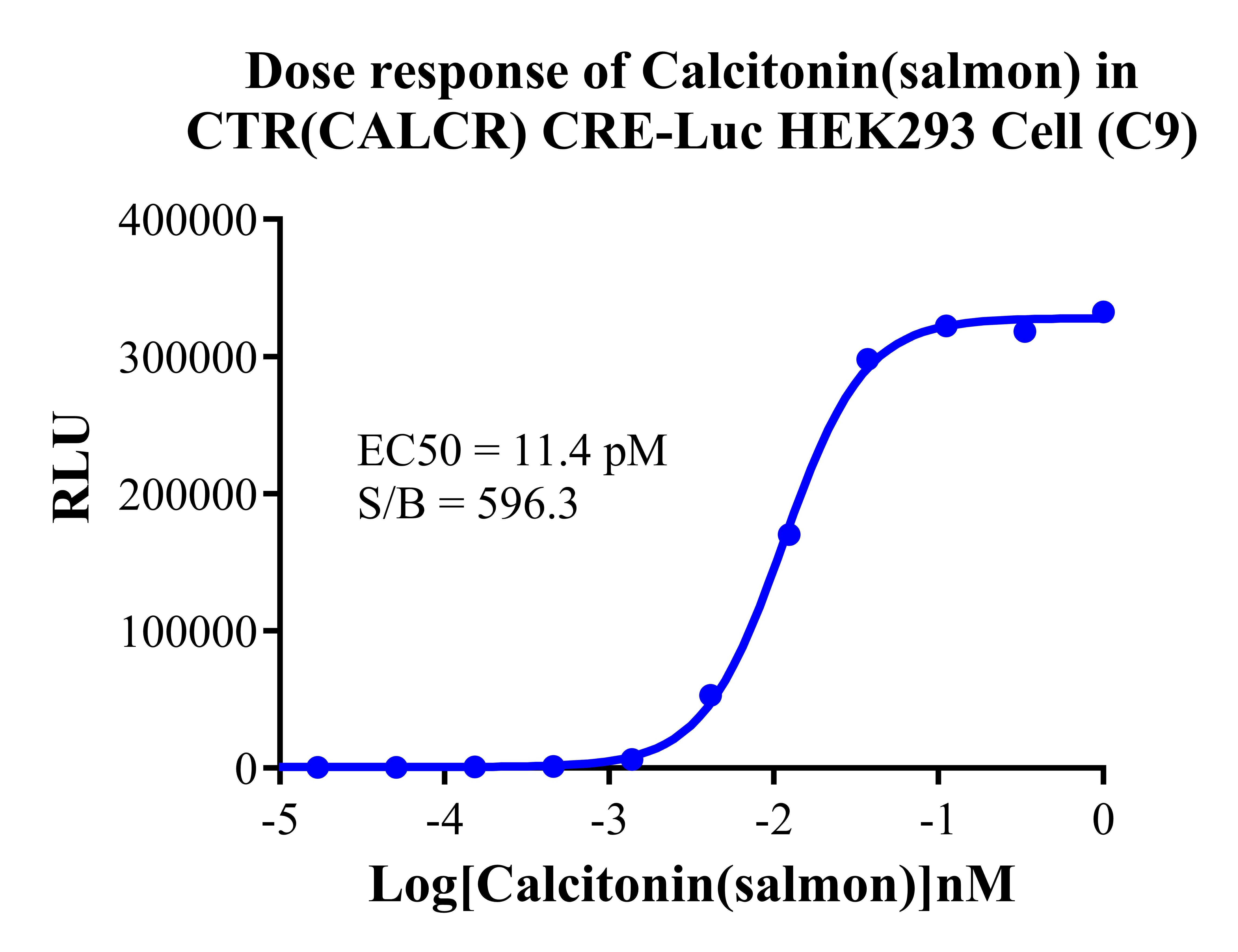 Figure 2. Dose response of Calcitonin(salmon) in CTR(CALCR) CRE-Luc HEK293 Cells (C9). |