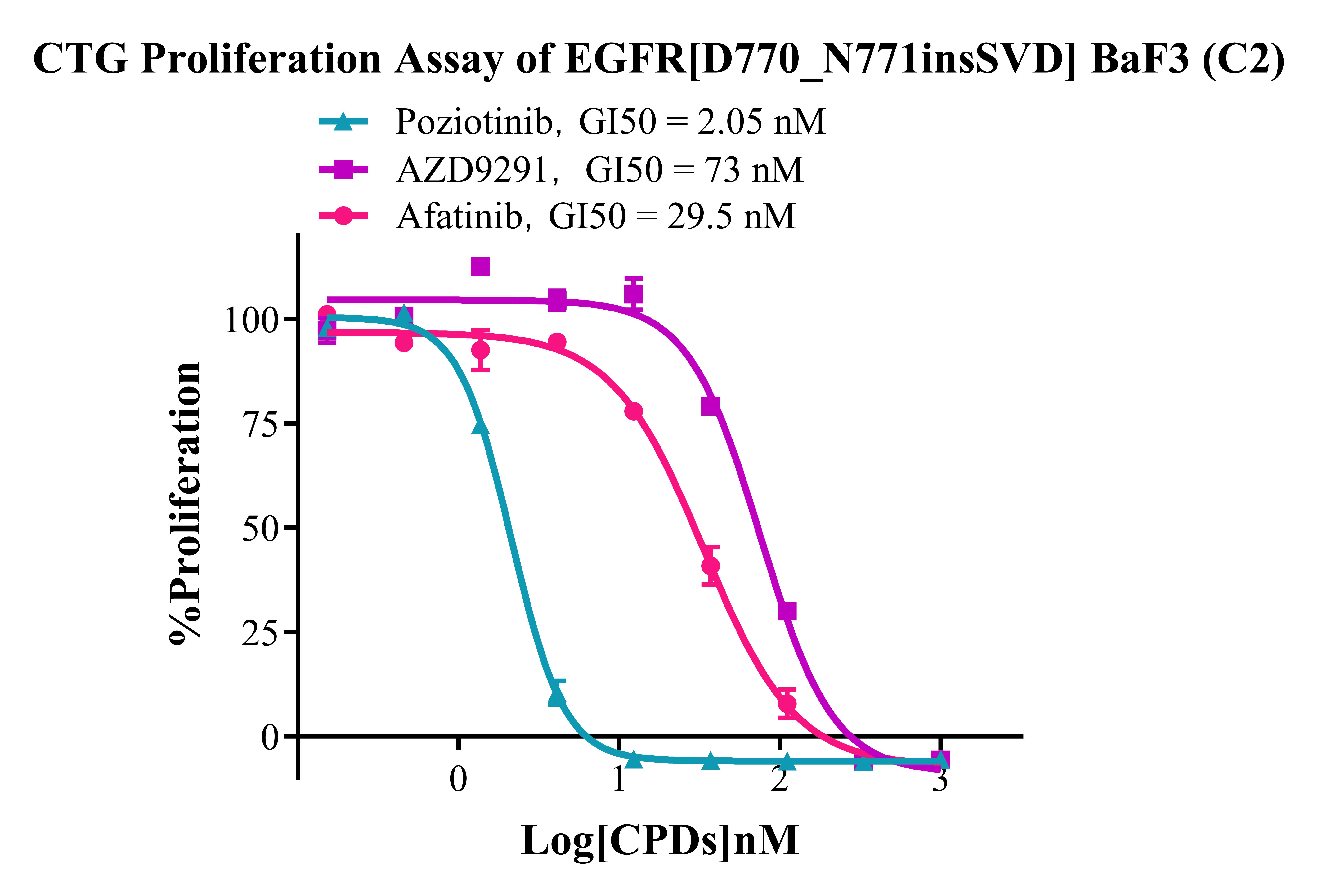 Figure 4. CTG Proliferation Assay of  EGFR [D770_N771insSVD] BaF3(C2).