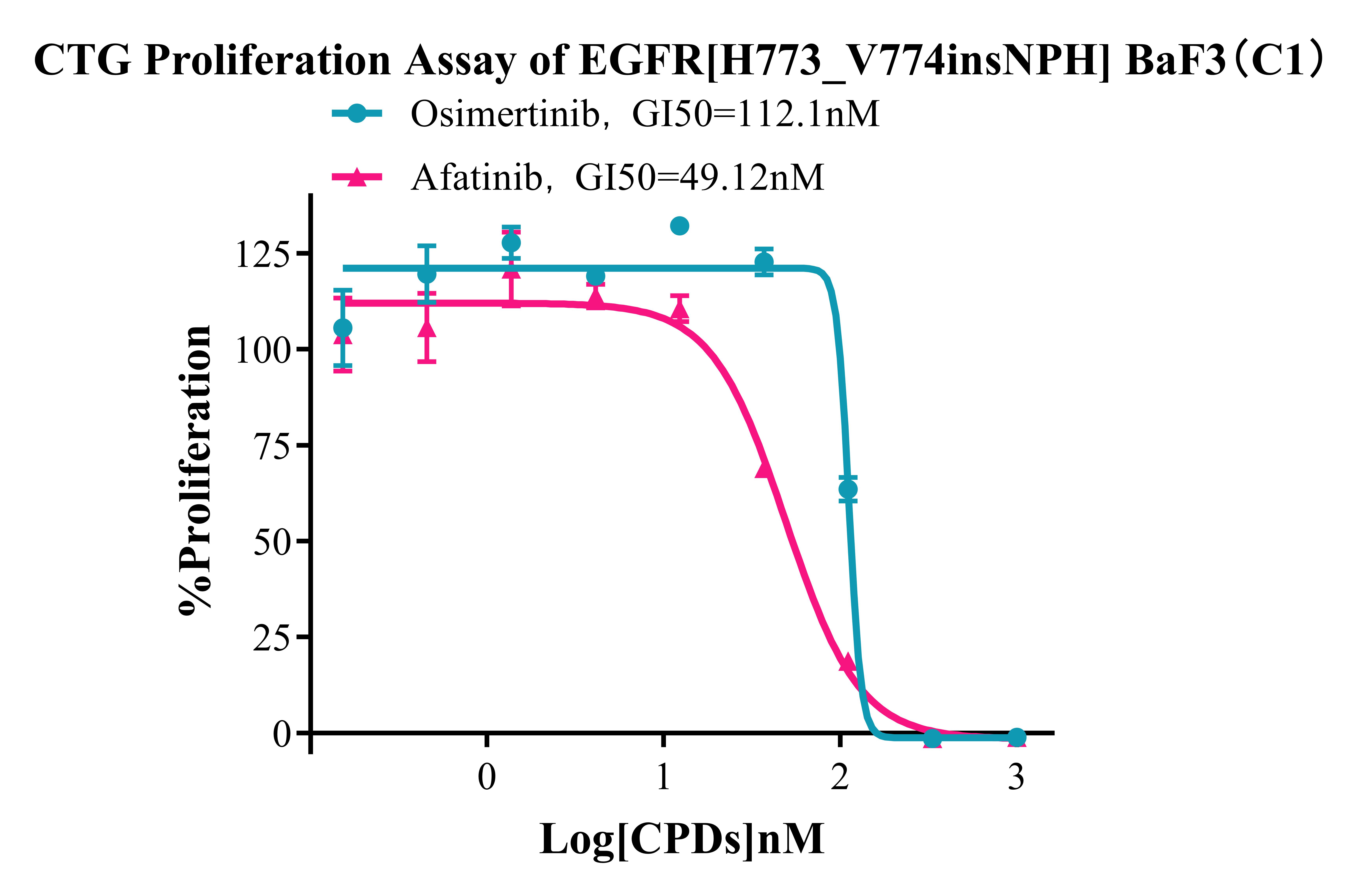 BaF3(小鼠原 B 細(xì)胞)的生長和增殖需要 IL-3 的維持。通過引入各種表達(dá)激酶的基因, 能作為 BaF3 的驅(qū)動基因,讓 BaF3 不再依賴 IL-3 而增殖,進(jìn)而激酶基因成為 BaF3 增殖依 賴的驅(qū)動基因,用于評估小分子藥物對激酶的靶向抑制作用,原理及流程見下圖所示。![]() Figure 1. EGFR[H773_V774insNPH] BaF3 細(xì)胞的構(gòu)建原理圖 |