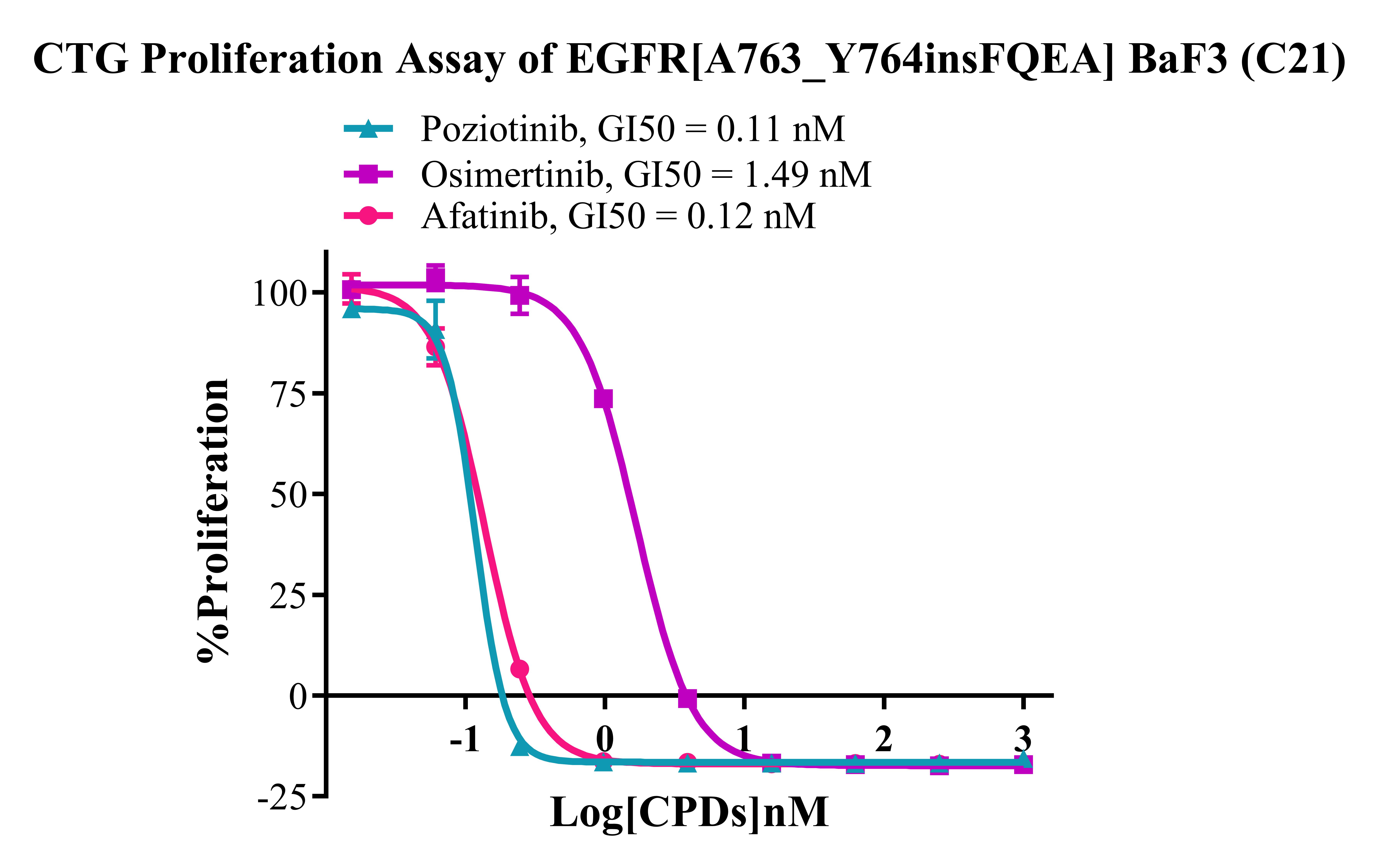3. Anti-proliferation assay Figure 3. CTG Proliferation Assay of EGFR [A763_ Y764insFQEA] BaF3 (C21). |