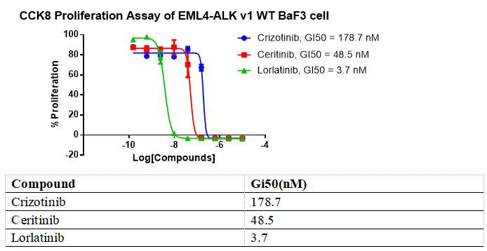 Figure 4. CCK8 Proliferation Assay of EML4-ALK V1 WT BaF3 Cell. |