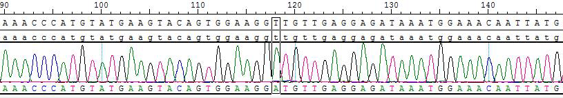KIT V559D lies within the juxtamembrane domain (exon 11) of the Kit protein. V559D confers a gain of function on Kit, as indicated by constitutive Kit phosphorylation, and is transforming in cell culture . | |