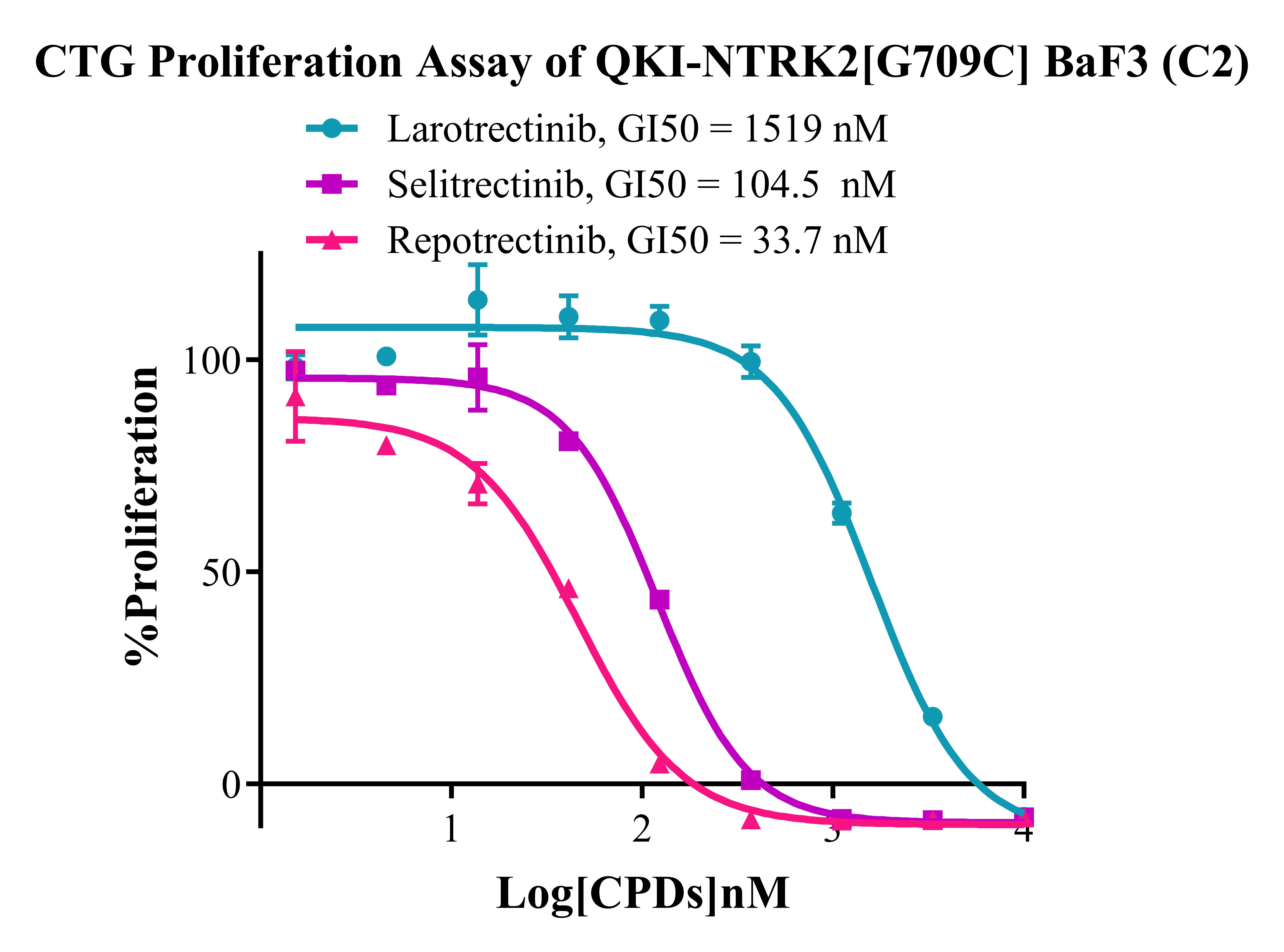 1. Anti-proliferation assay Figure 2. CTG Proliferation Assay of QKI-NTRK2 [G709C] BaF3(C2). |