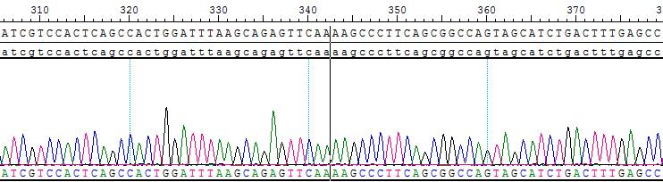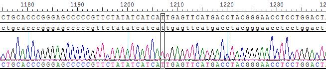 2. Sanger of BCR-ABL1 [E255V/T315I]/BaF3 Figure 2. BCR-ABL1 [E255V/T315I]/BaF3 Fusion Figure 3. BCR-ABL1 [E255V/T315I]/BaF3 E255V Mutation Figure 4. BCR-ABL1 [E255V/T315I]/BaF3 T315I Mutation |