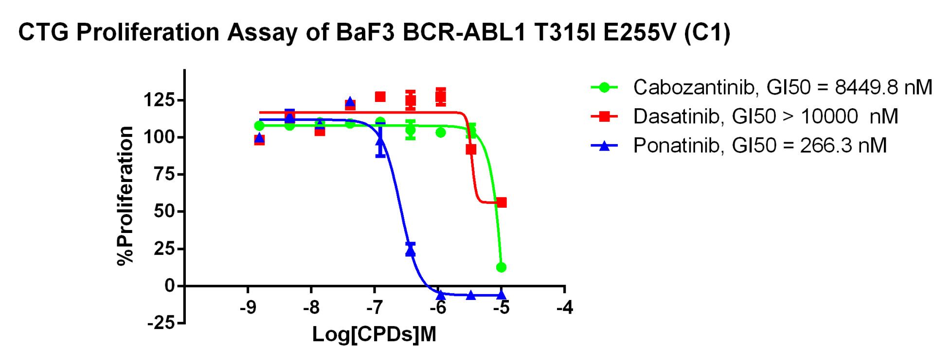3. Anti-proliferation assay Figure 5. CTG Proliferation Assay of BaF3 BCR-ABL1 T315I E255V (C1). |