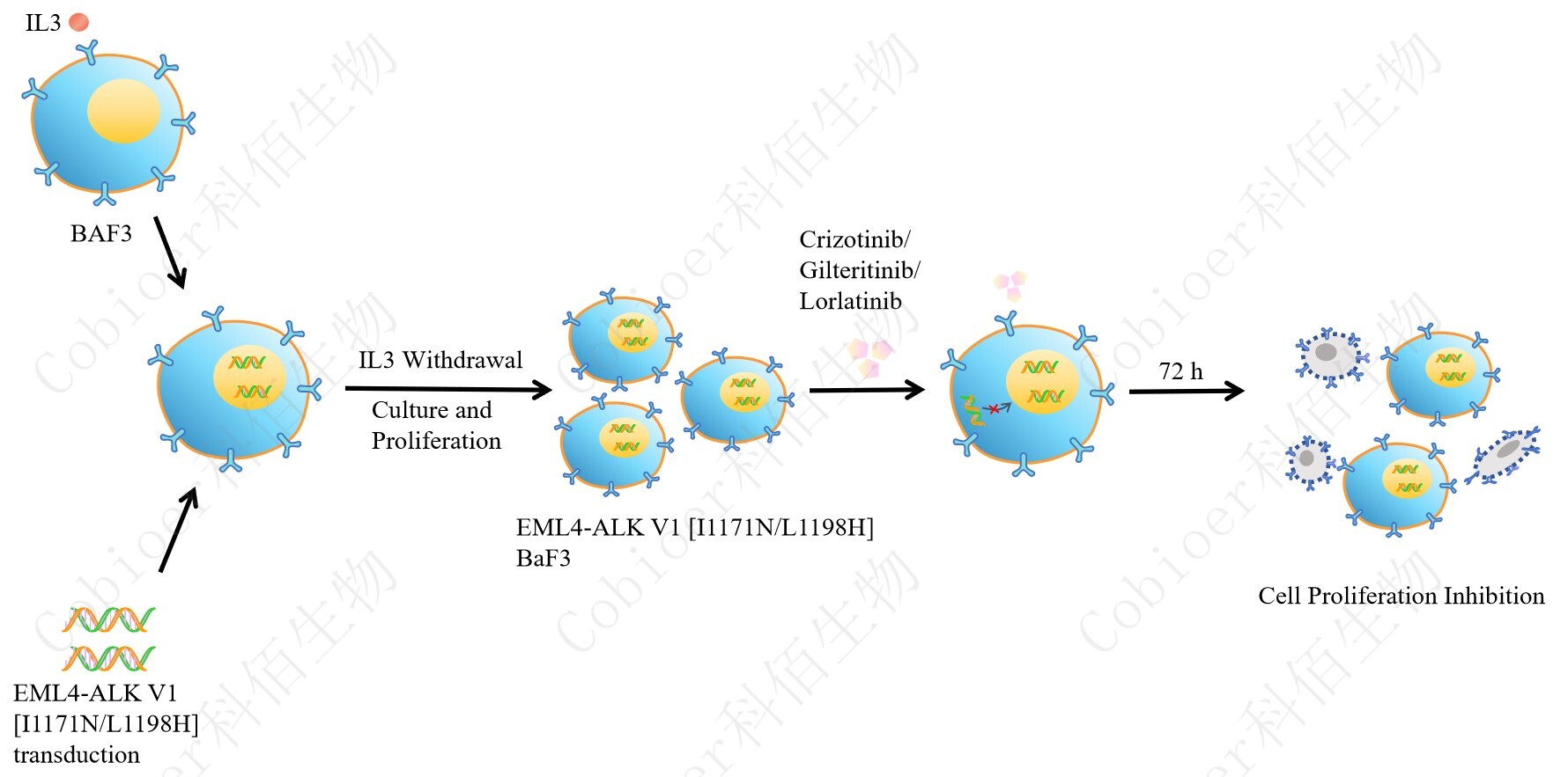 BaF3(小鼠原 B 細(xì)胞)的生長和增殖需要 IL-3 的維持。通過引入各種表達(dá)激酶的基因, 能作為 BaF3 的驅(qū)動基因,讓 BaF3 不再依賴 IL-3 而增殖,進(jìn)而激酶基因成為 BaF3 增殖依 賴的驅(qū)動基因,用于評估小分子藥物對激酶的靶向抑制作用,原理及流程見下圖所示。