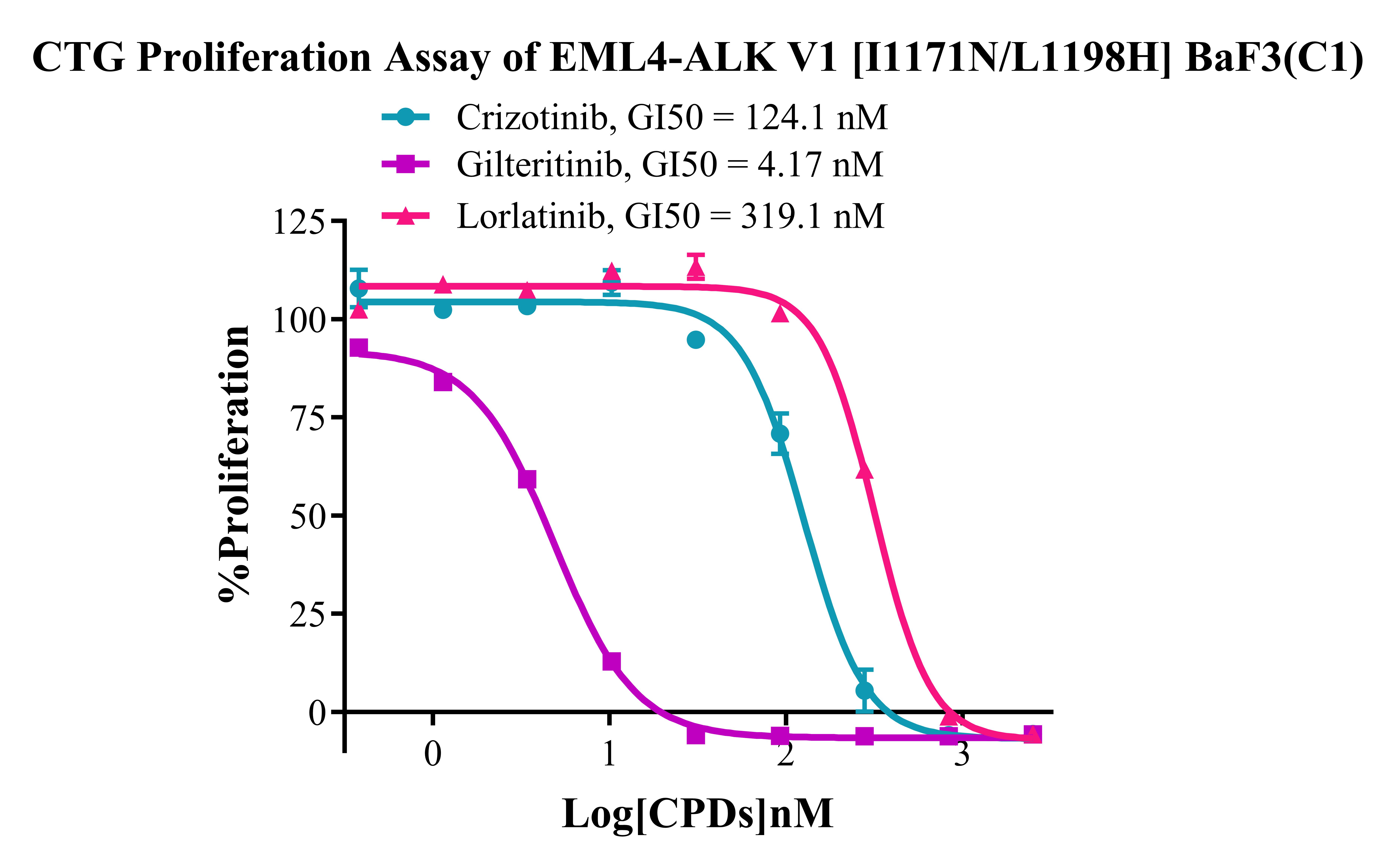2. Anti-proliferation assay Figure 7. CTG Proliferation Assay of EML4-ALK V1 I1171N/L1198H BaF3(C1). |