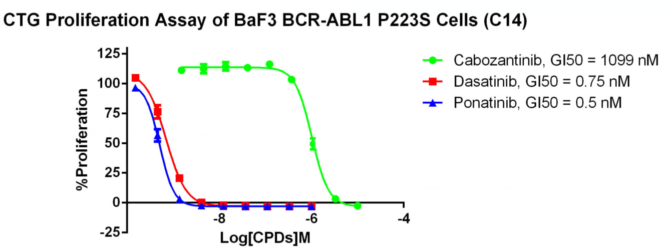 Figure 4. CTG Proliferation Assay of BaF3 BCR-ABL1 P223S Cells (C14).