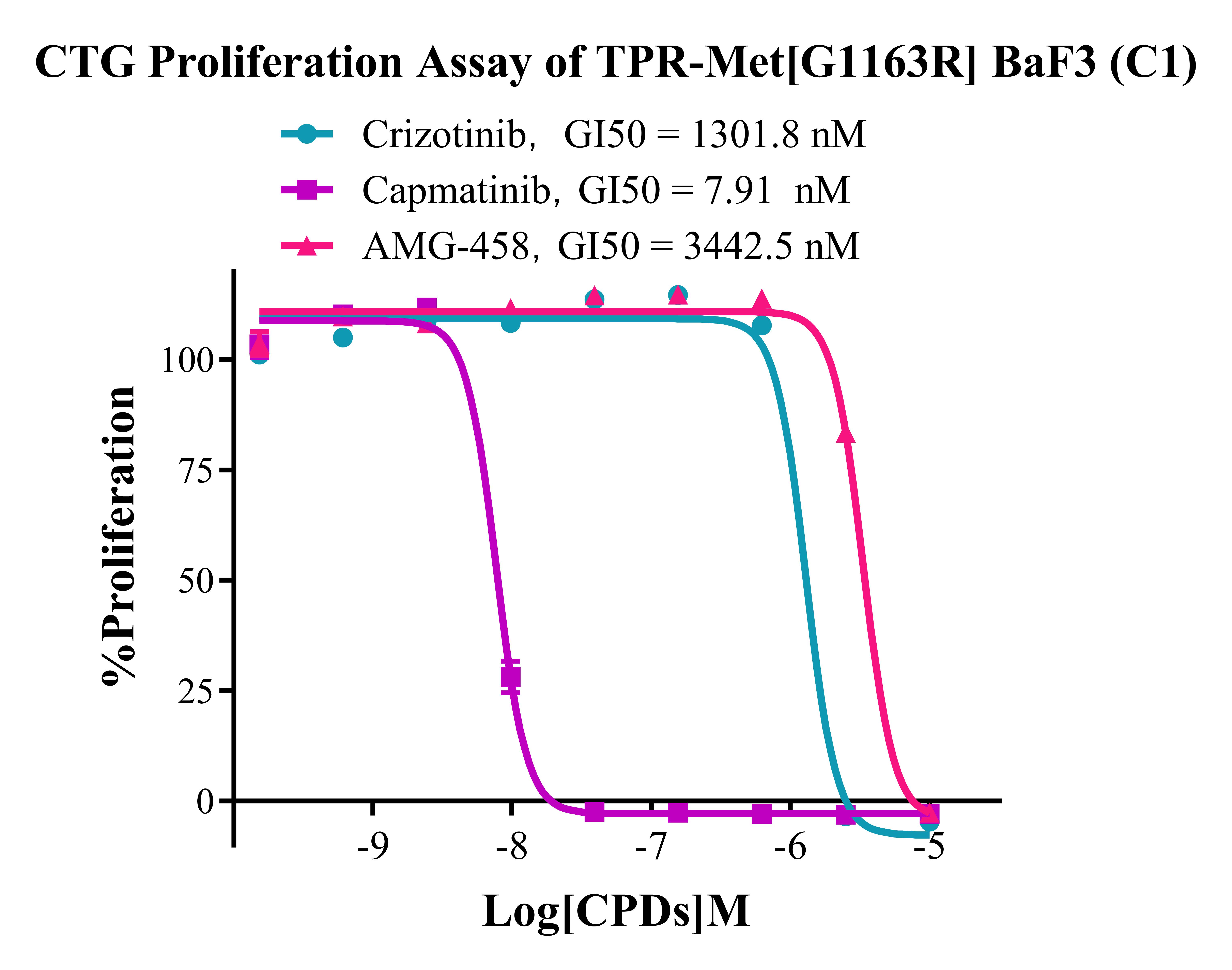 3. Anti-proliferation assay Figure 5. CTG Proliferation Assay of TPR-Met [G1163R] BaF3 (C1). |