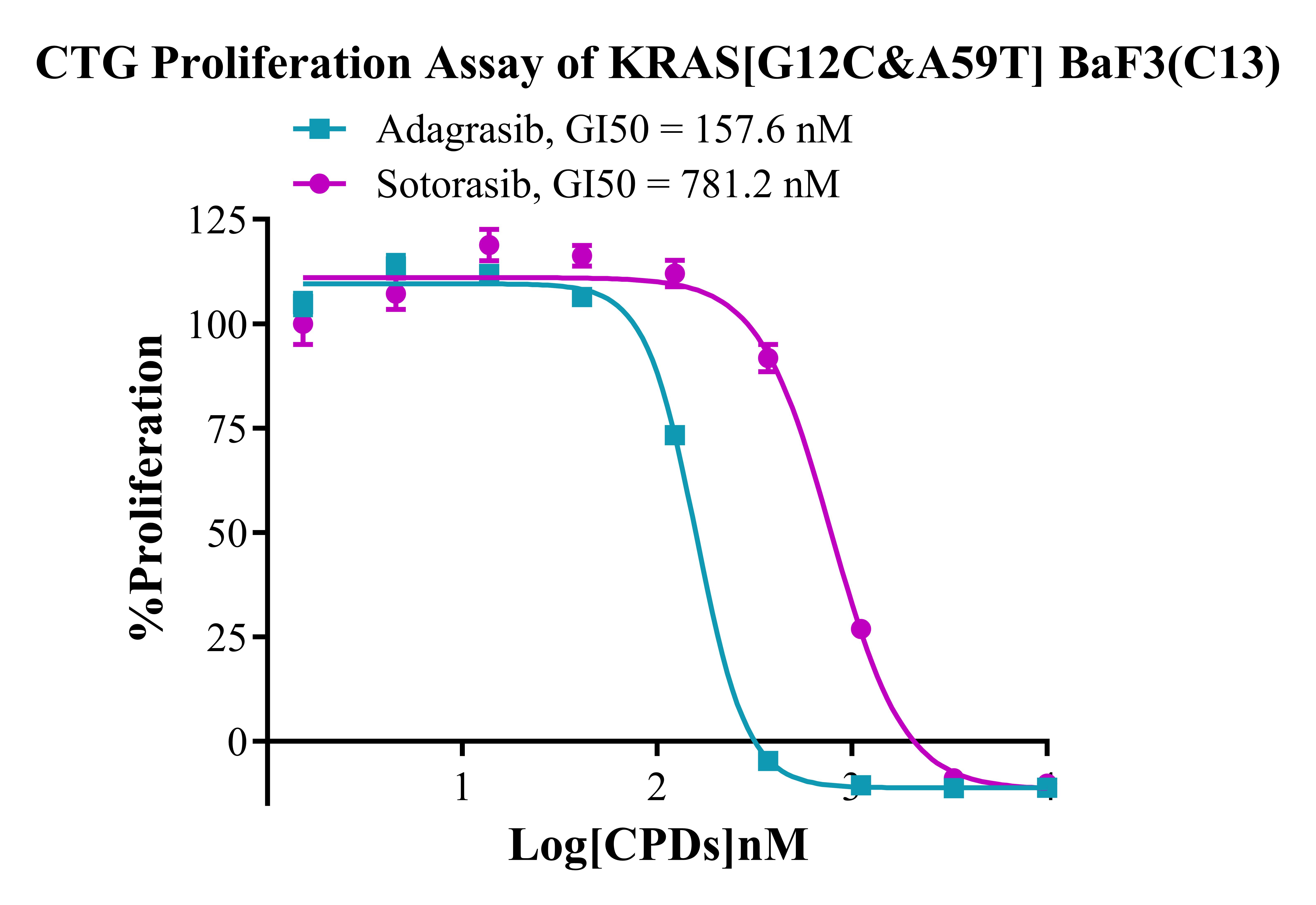2. Anti-proliferation assay Figure 3. CTG Proliferation Assay of KRAS[G12C&A59T] BaF3 (C13). |