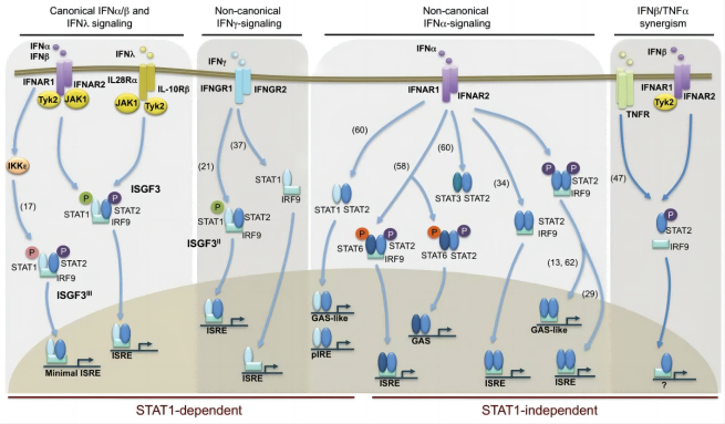 Description: | pISGF3G.48 RE-Luc is designed for monitoring the induction of STAT1::STAT2::IRF9.IRF9 Transcription factor that mediates signaling by type I IFNs (IFN-alpha and IFN-beta). Following type I IFN binding to cell surface receptors, Jak kinases (TYK2 and JAK1) are activated, leading to tyrosine phosphorylation of STAT1 and STAT2. IRF9/ISGF3G associates with the phosphorylated STAT1:STAT2 dimer to form a complex termed ISGF3 transcription factor, that enters the nucleus. ISGF3 binds to the IFN stimulated response element (ISRE) to activate the transcription of interferon stimulated genes, which drive the cell in an antiviral state. Belongs to the IRF family. |