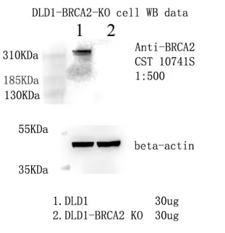 1.WB of DLD1-BRCA2-/- Figure 1. DLD1-BRCA2-KO cell WB data |