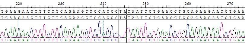 2. Sanger of DLD1-BRCA2-/- Figure 2. BRCA2 p.Y42 c.124_125del |